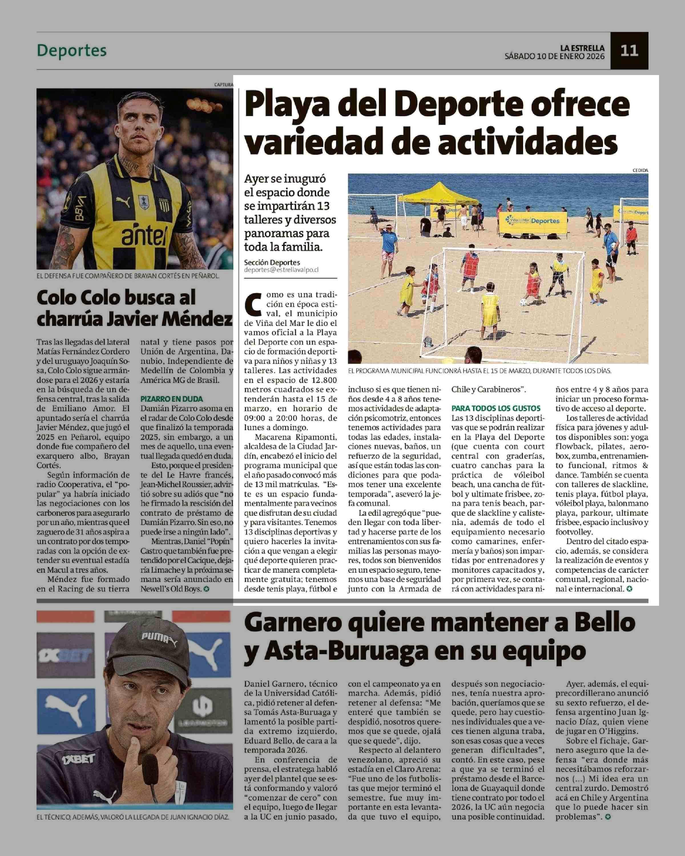 Playa del Deporte ofrece variedad de actividades 10-01-2026 La Estrella de Valparaíso |