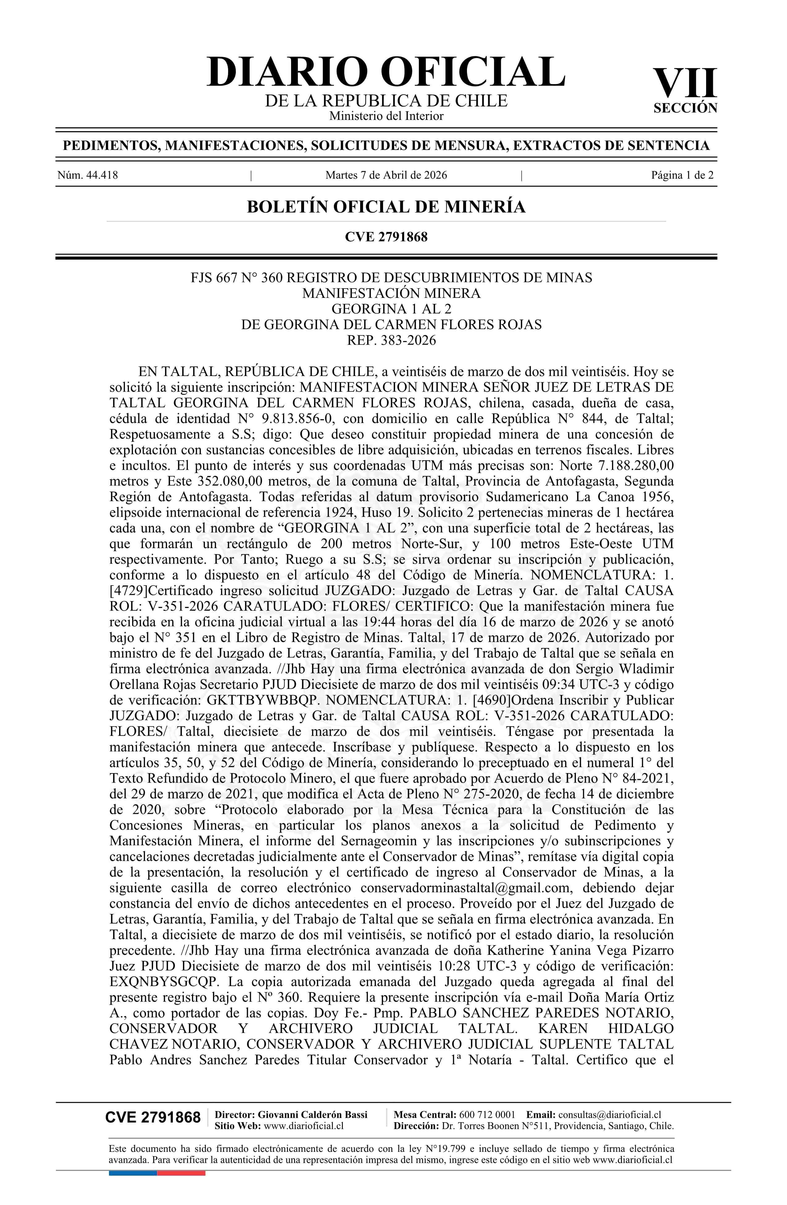 07-04-2026 DIARIO OFICIAL CHILE - BOLETÍN OFICIAL DE MINERÍA
