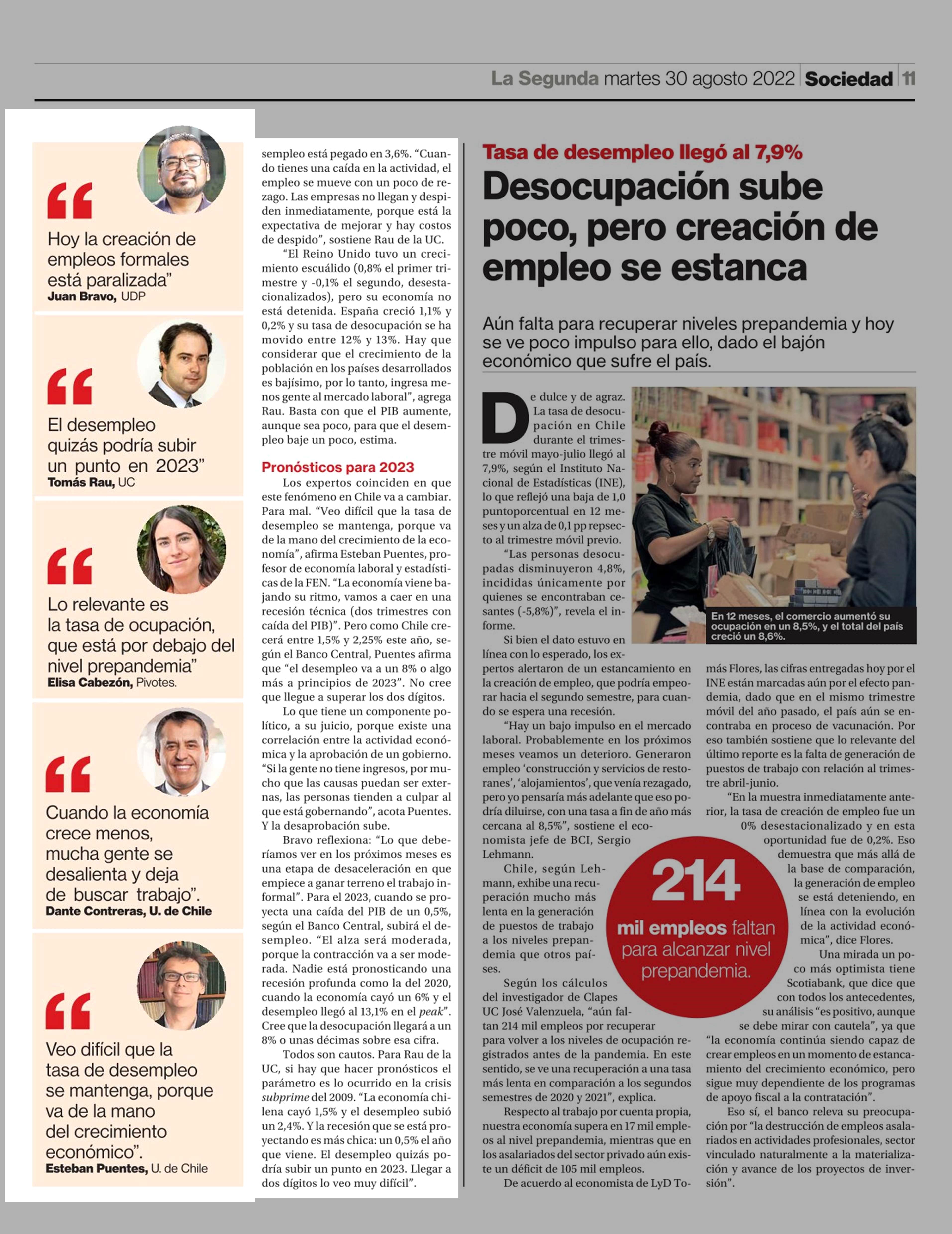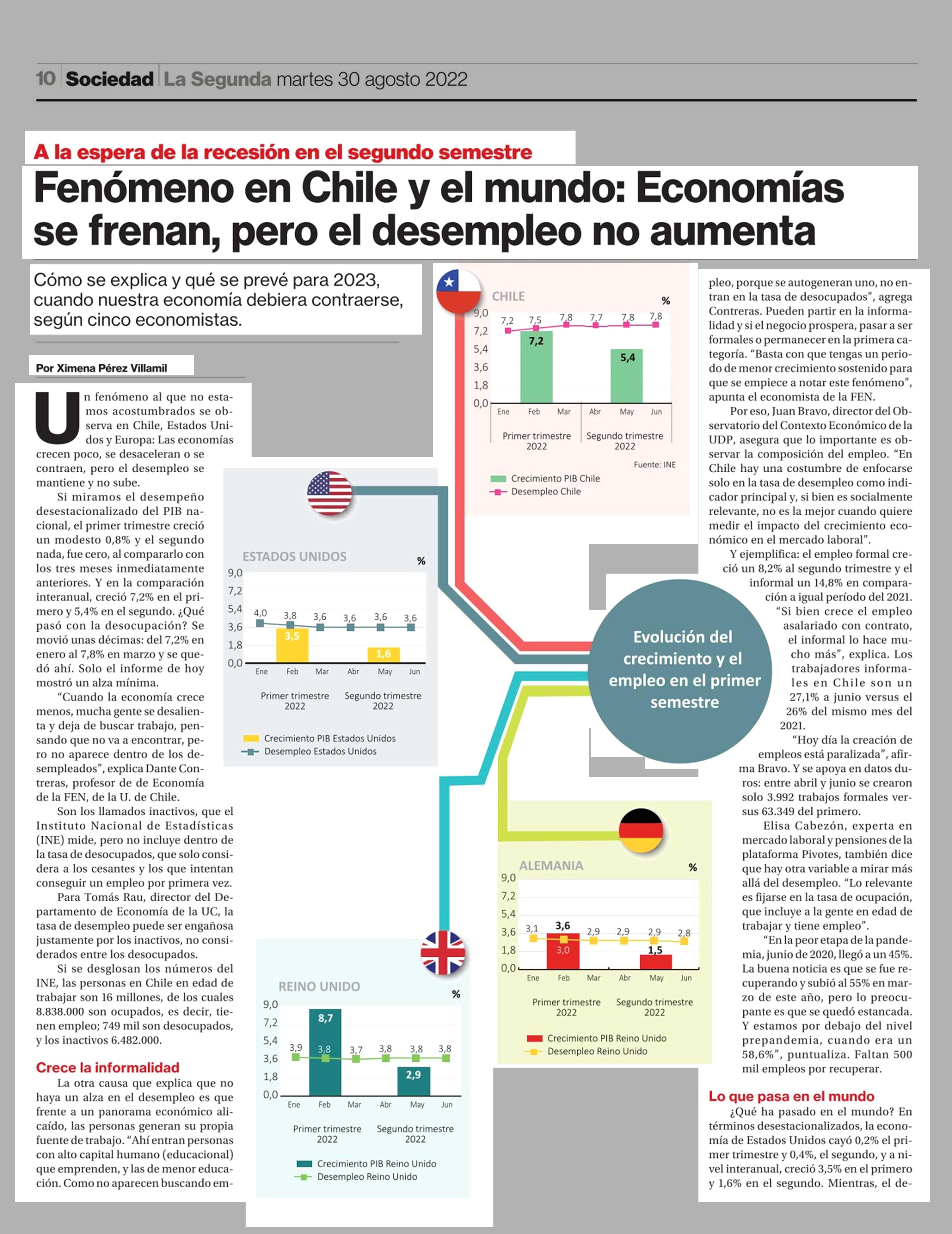 Fenómeno en Chile y el mundo: Economías se frenan, pero el desempleo no aumenta 30-08-2022 La Segunda |