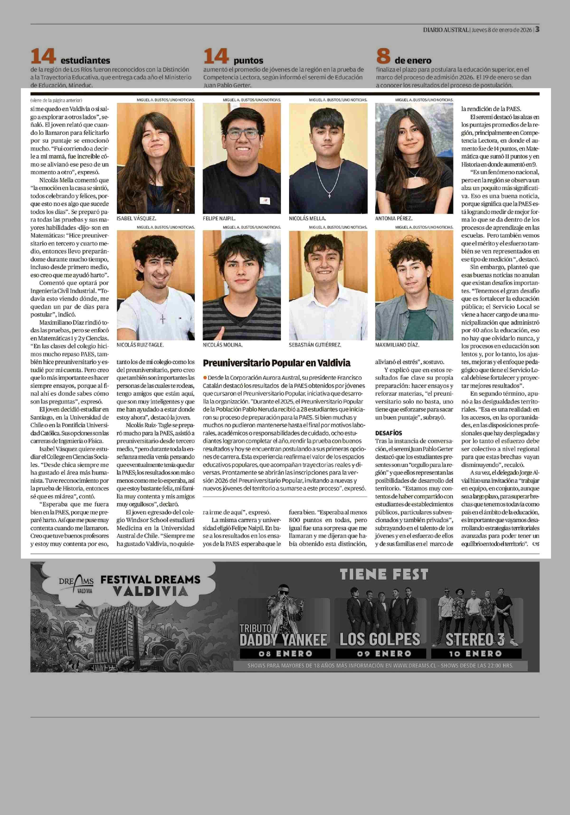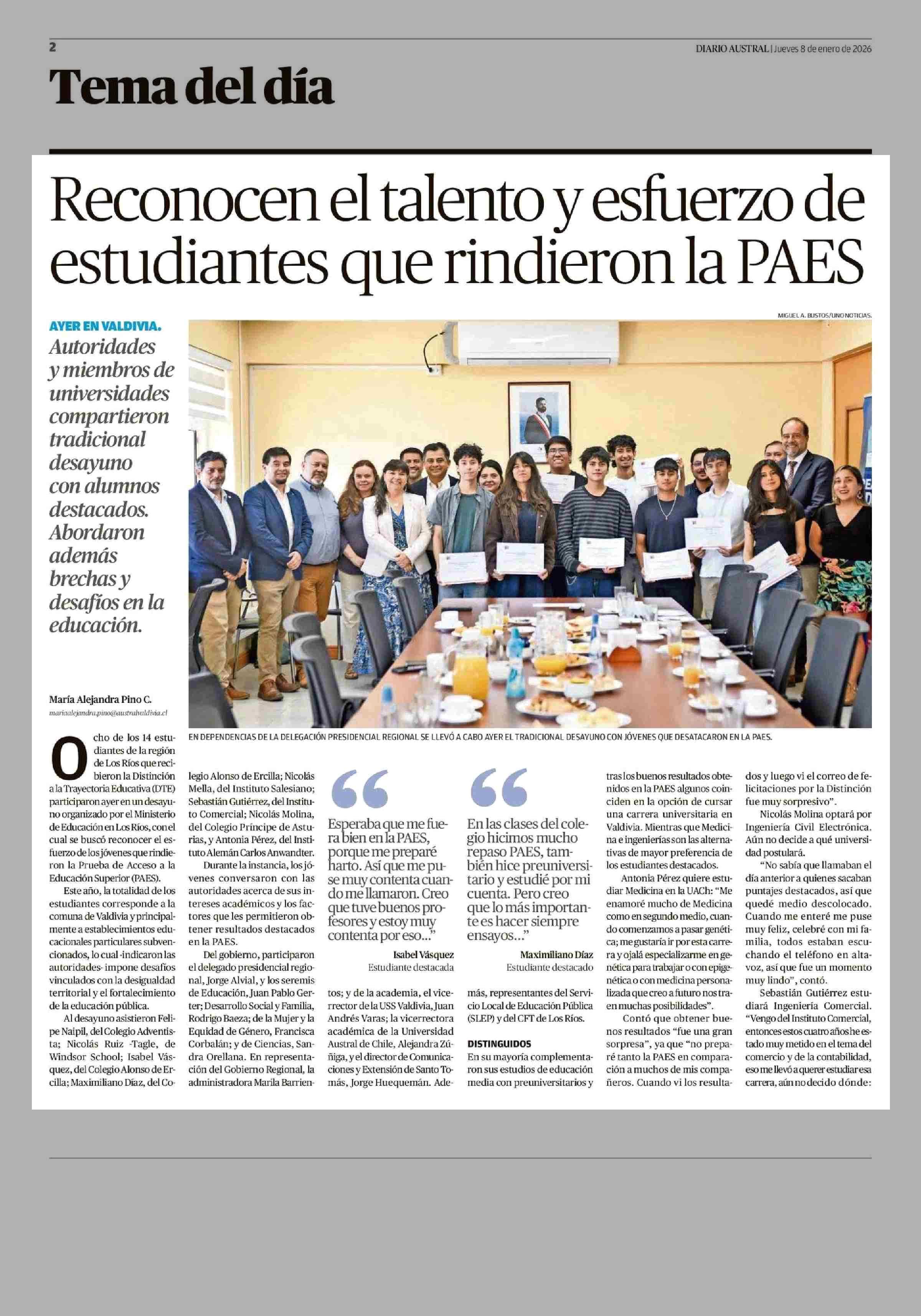 Reconocen el talento y esfuerzo de estudiantes que rindieron la PAES 08-01-2026 Diario Austral Región de Los Ríos |