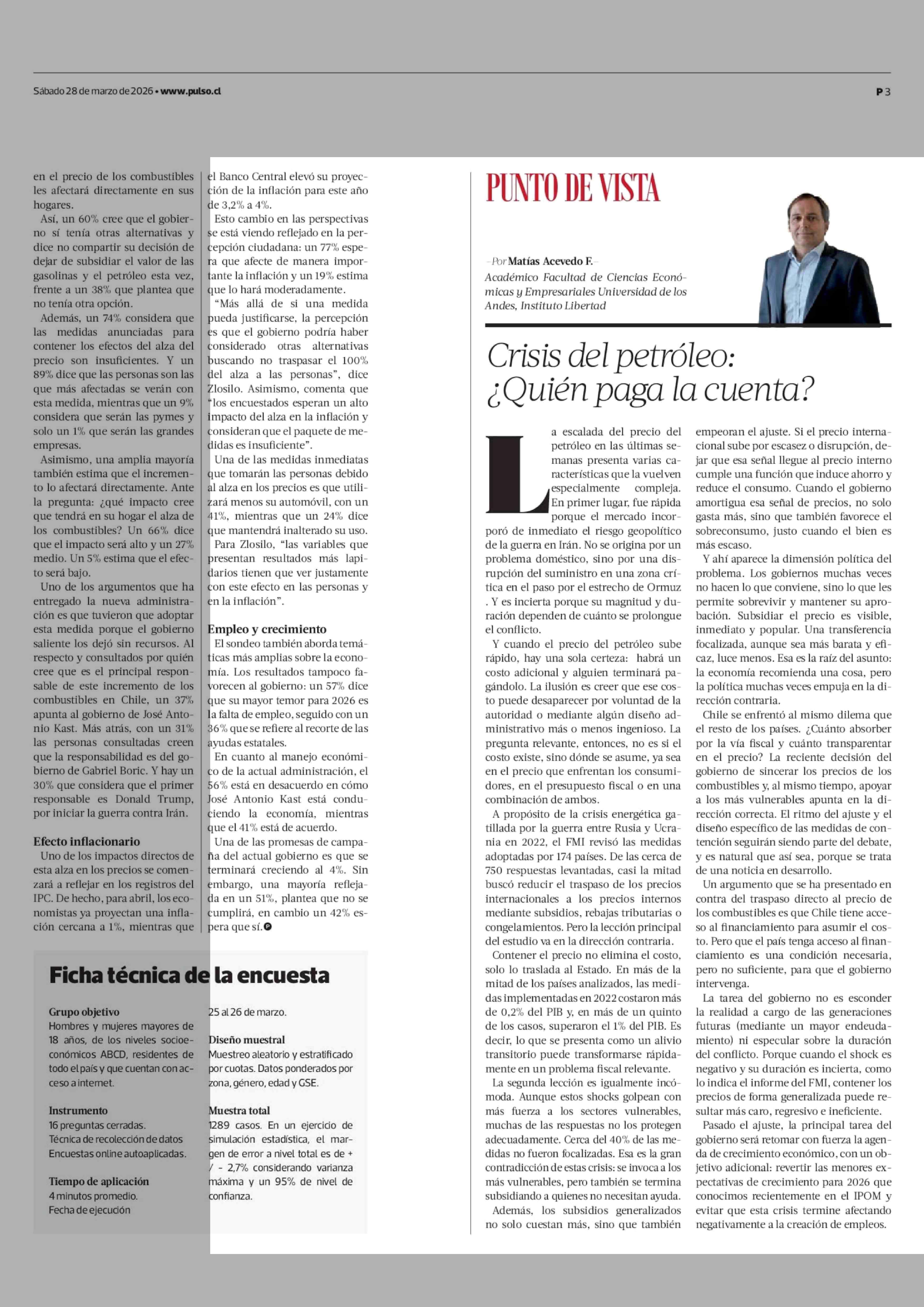 Cómo el alza de los combustibles se transformó en el primer test oficialista 28-03-2026 La Tercera |
