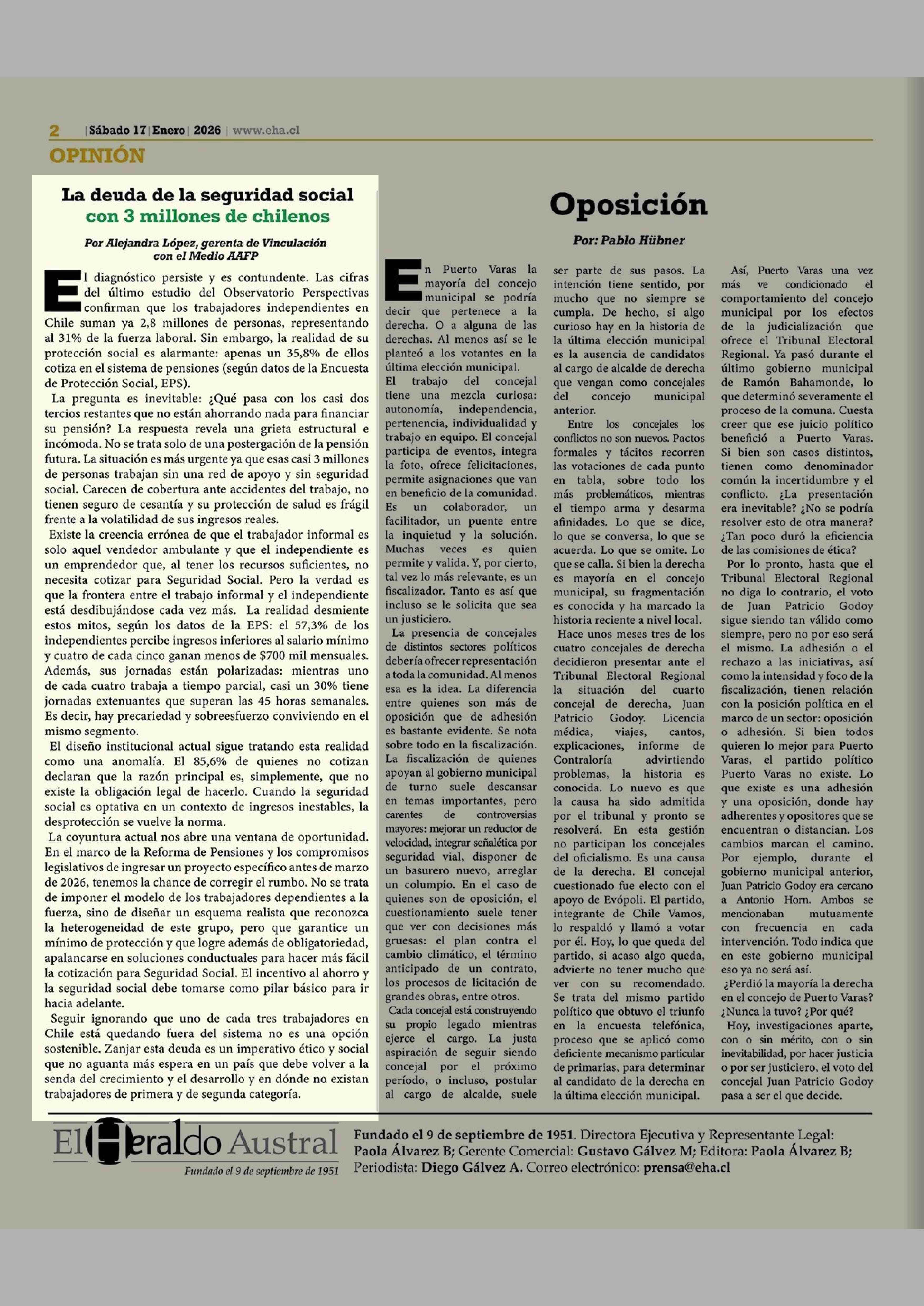 Fecha: 17-01-2026 Sector: Columnas de Opinión Región: Región de Los Lagos