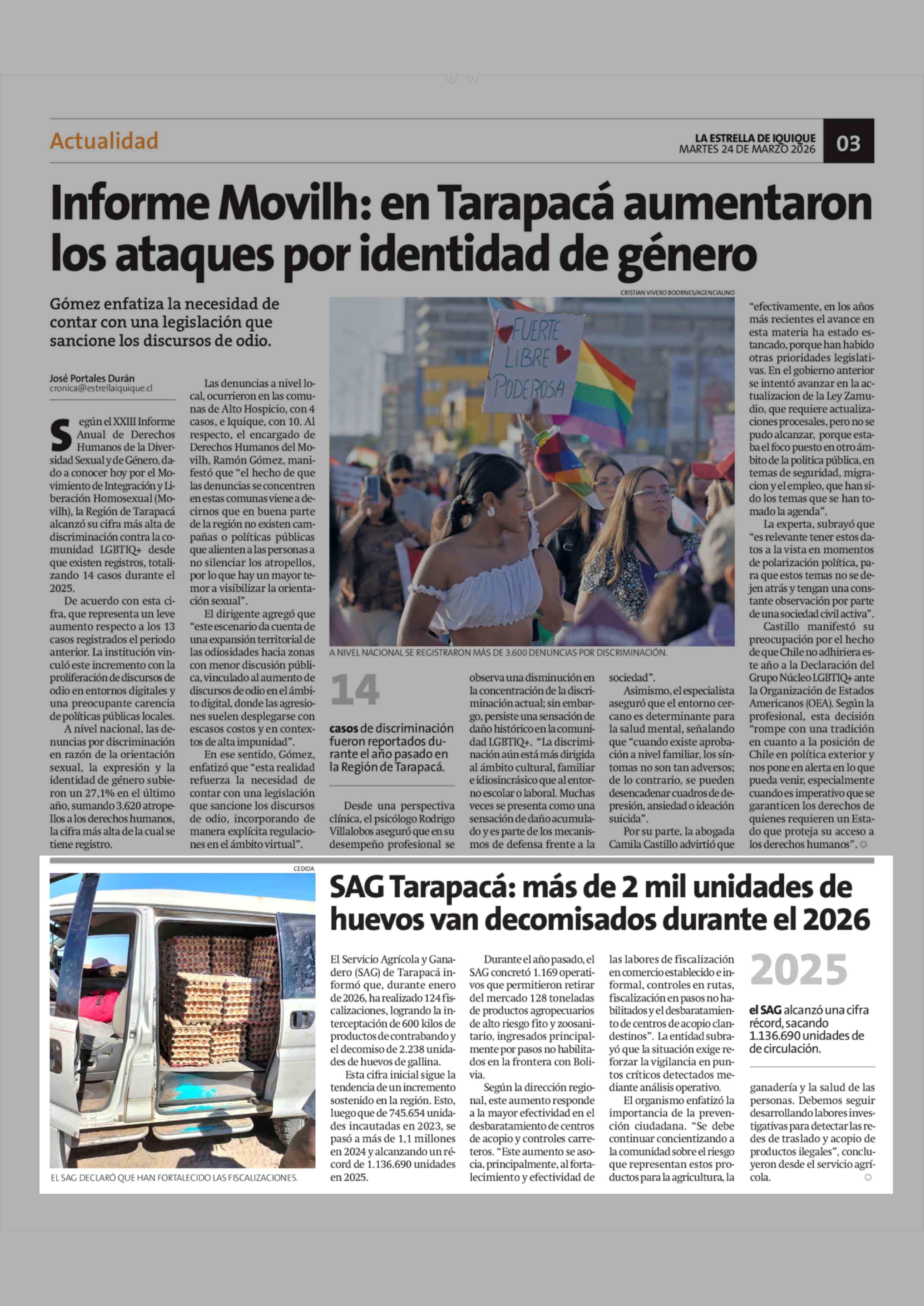 SAG Tarapacá: más de 2 mil unidades de huevos van decomisados durante el 2026 24-03-2026 La Estrella de Iquique |