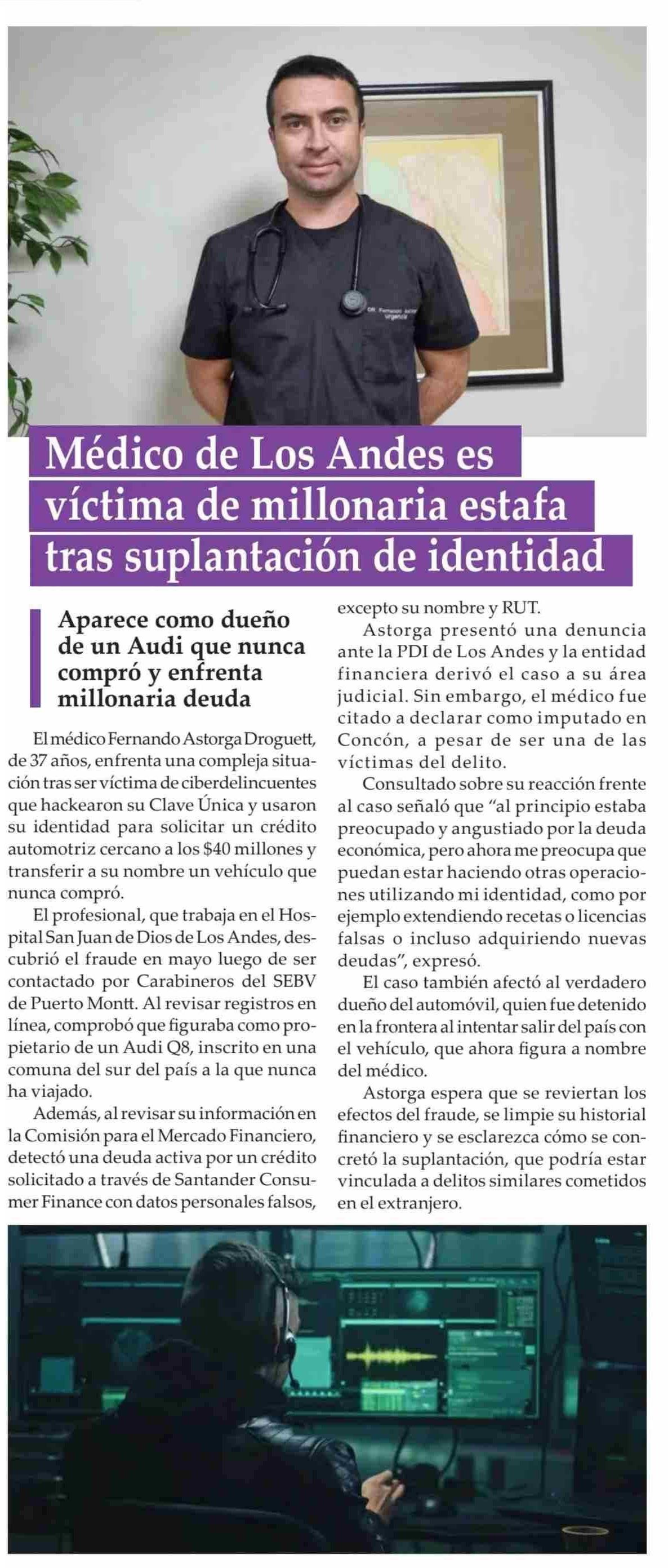 | Título: | Médico de Los Andes es víctima de millonaria estafa tras suplantación de identidad |