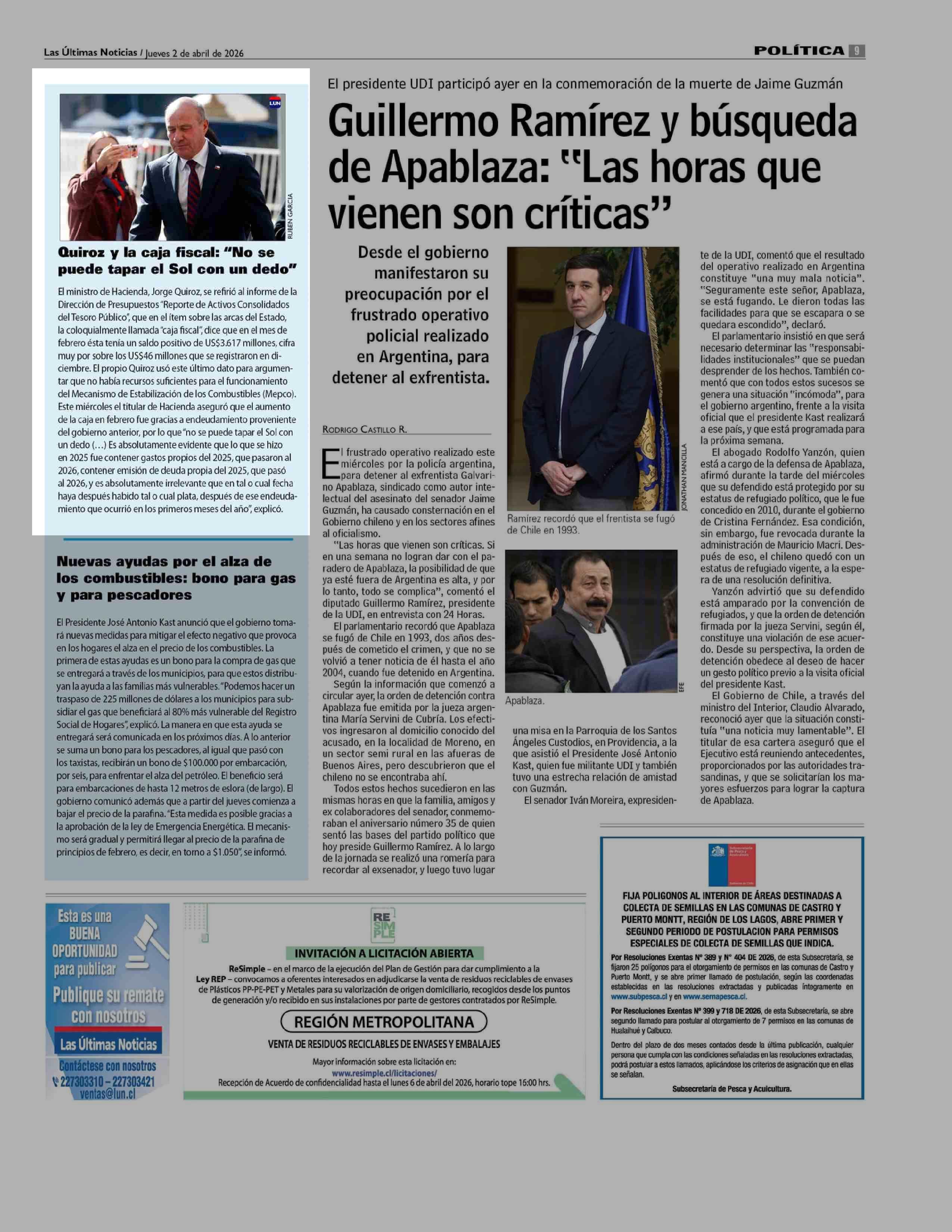 Fuente: Las Últimas Noticias (Las Últimas Noticias Segunda Edición - Chile) Página(s): 9