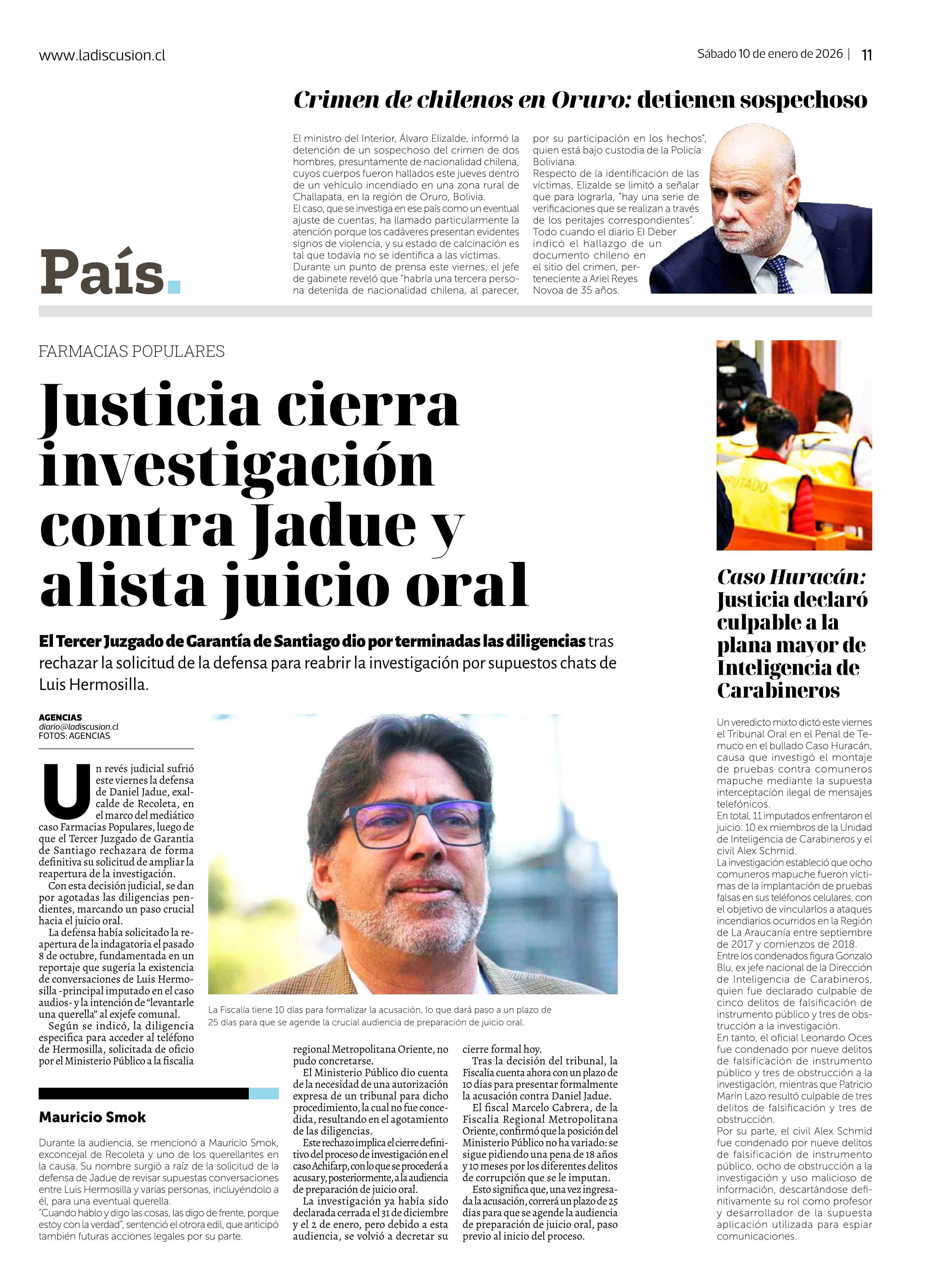 Justicia cierra investigación contra Jadue y alista juicio oral 10-01-2026 La Discusión |