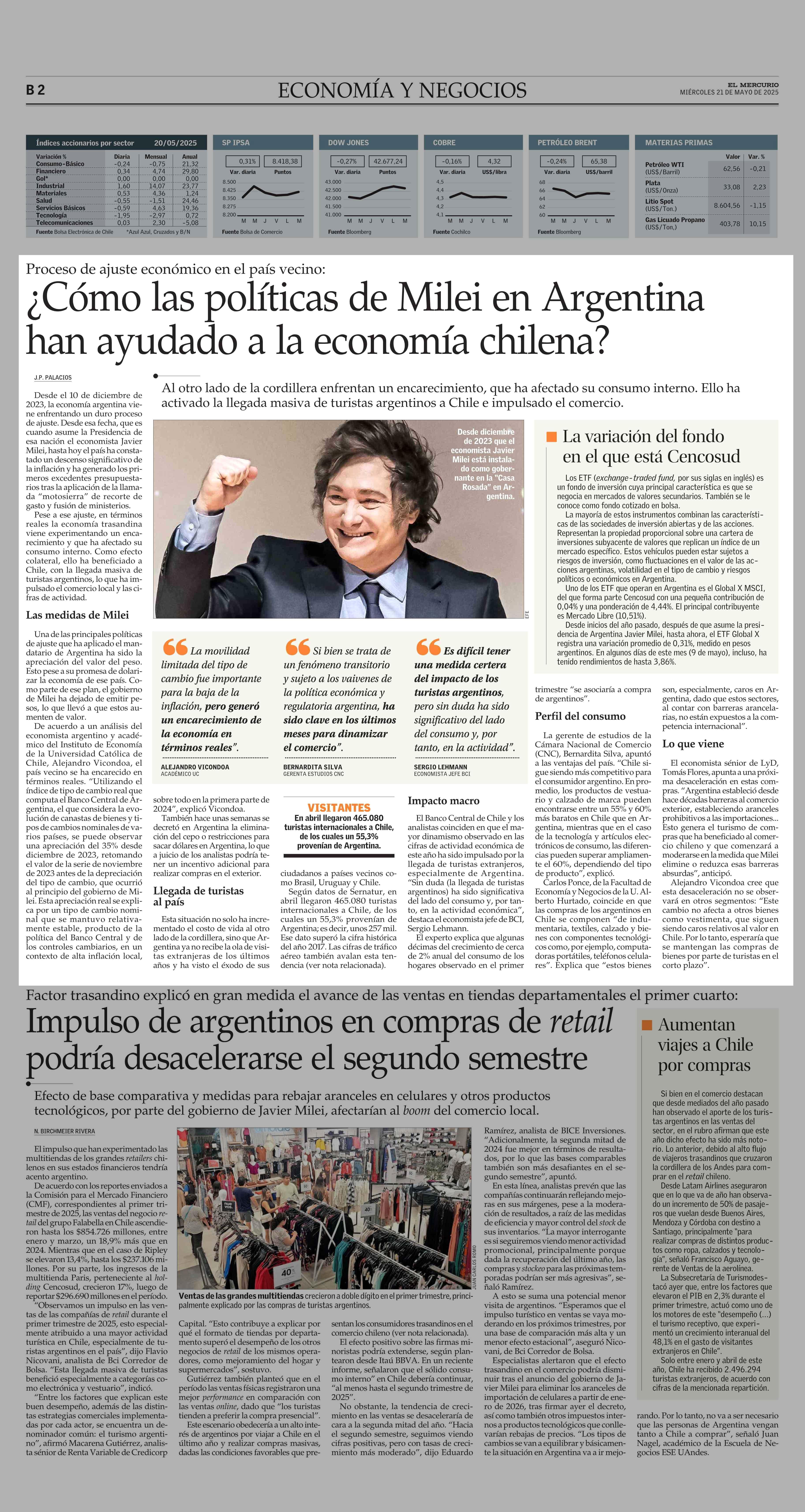 ¿Cómo las políticas de Milei en Argentina han ayudado a la economía chilena? 21-05-2025 El Mercurio |
