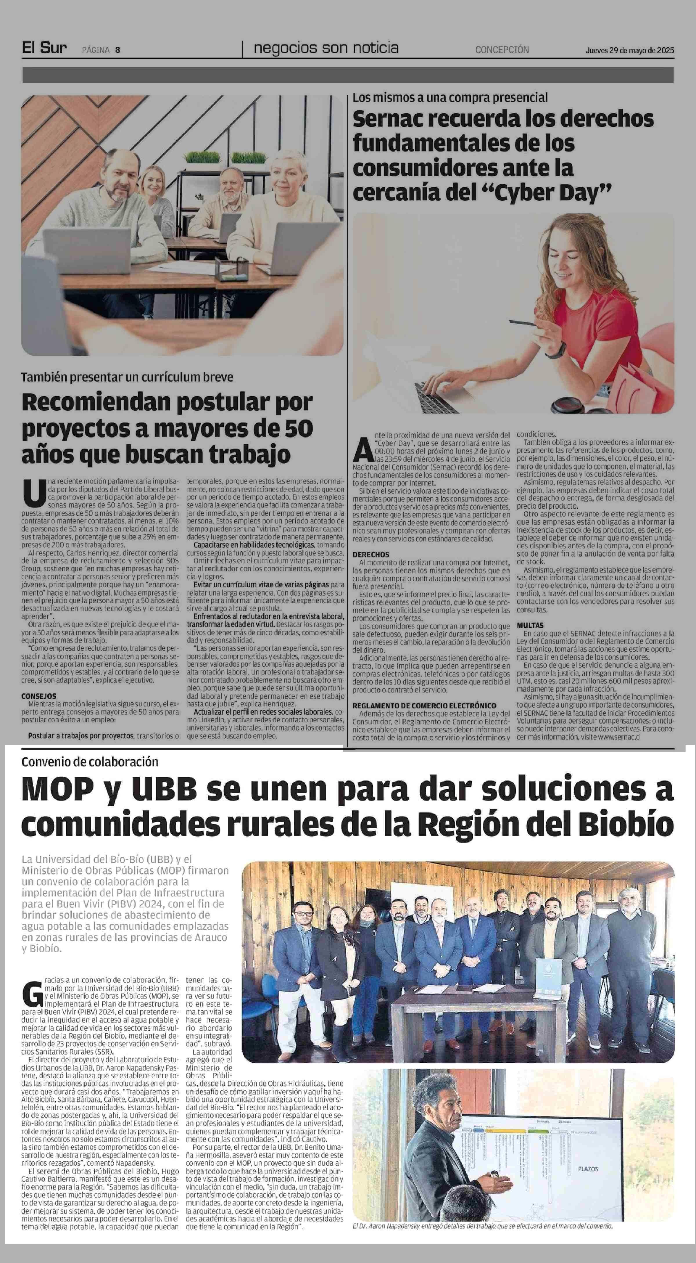 MOP y UBB se unen para dar soluciones a comunidades rurales de la Región del Biobío 29-05-2025 El Sur |