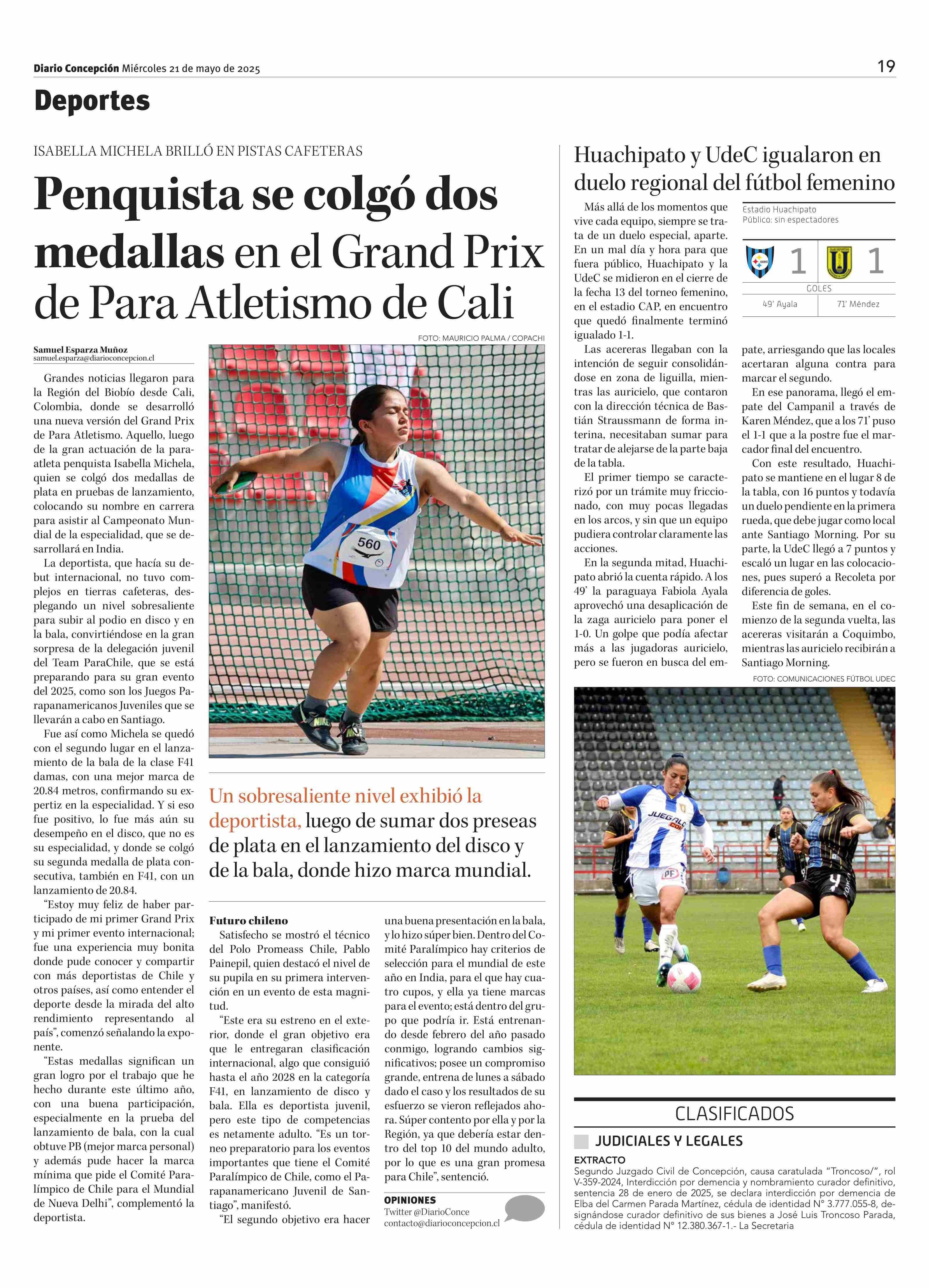 Penquista se colgó dos medallas en el Grand Prix de Para Atletismo de Cali 21-05-2025 Diario Concepción |