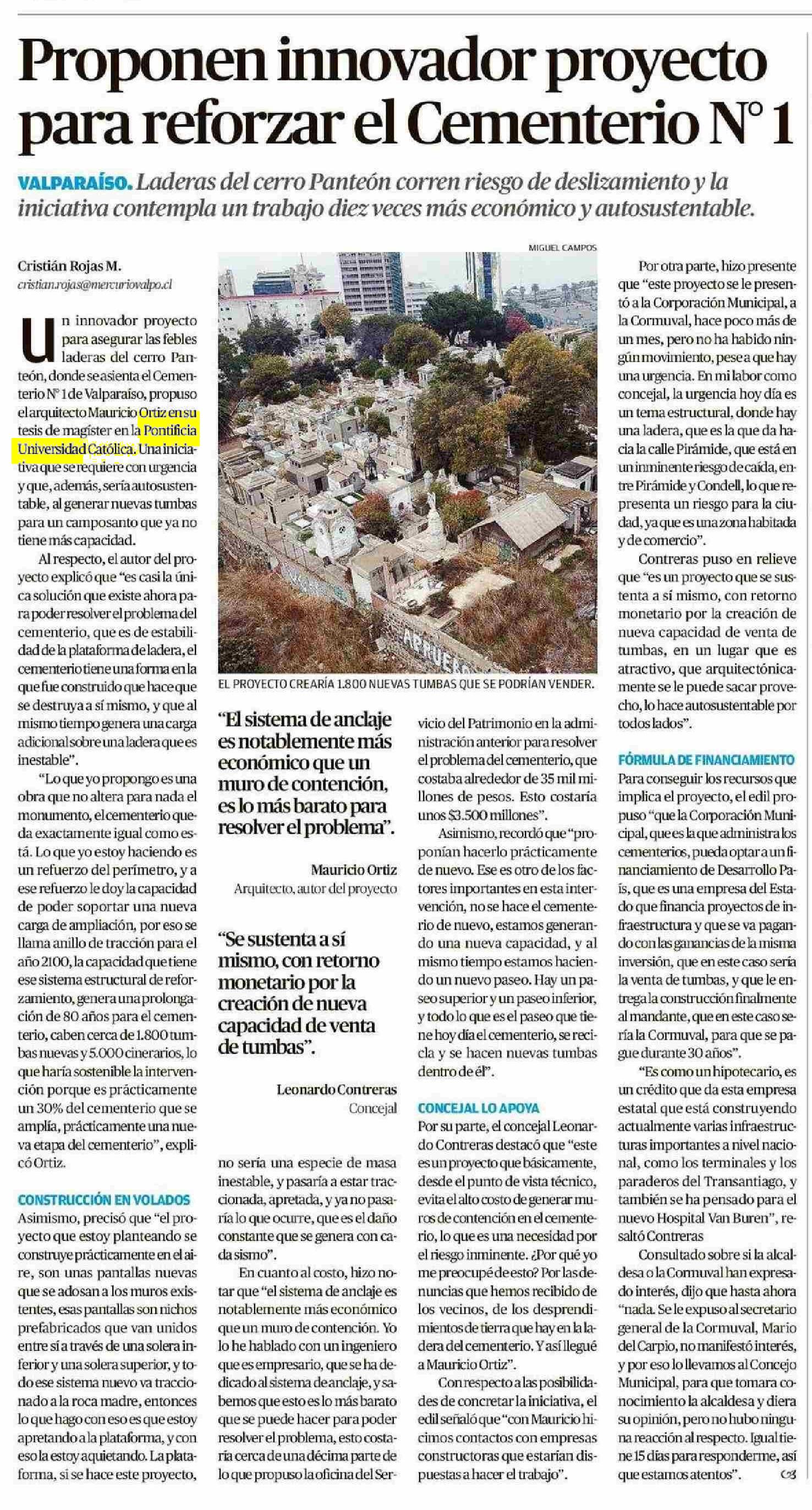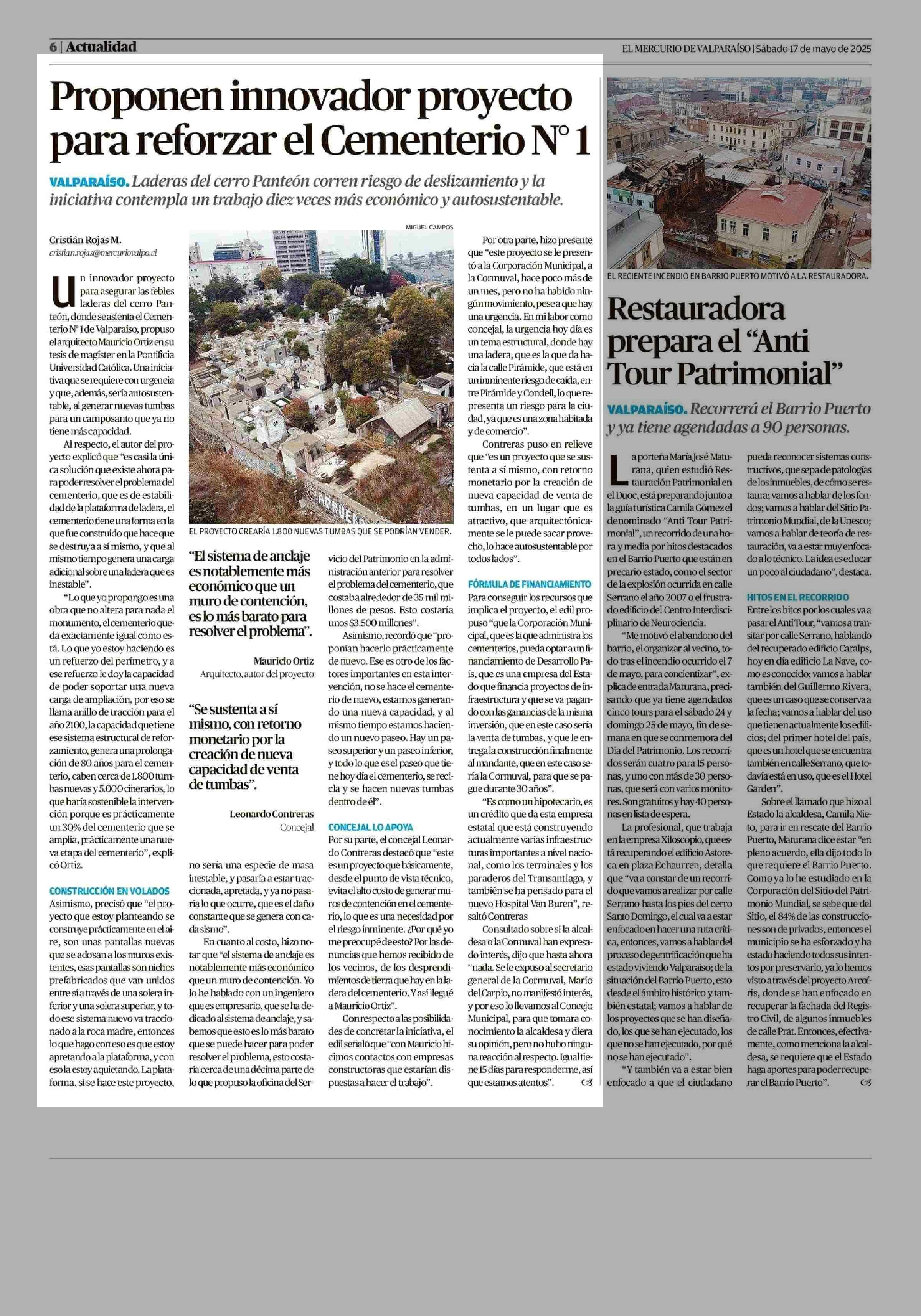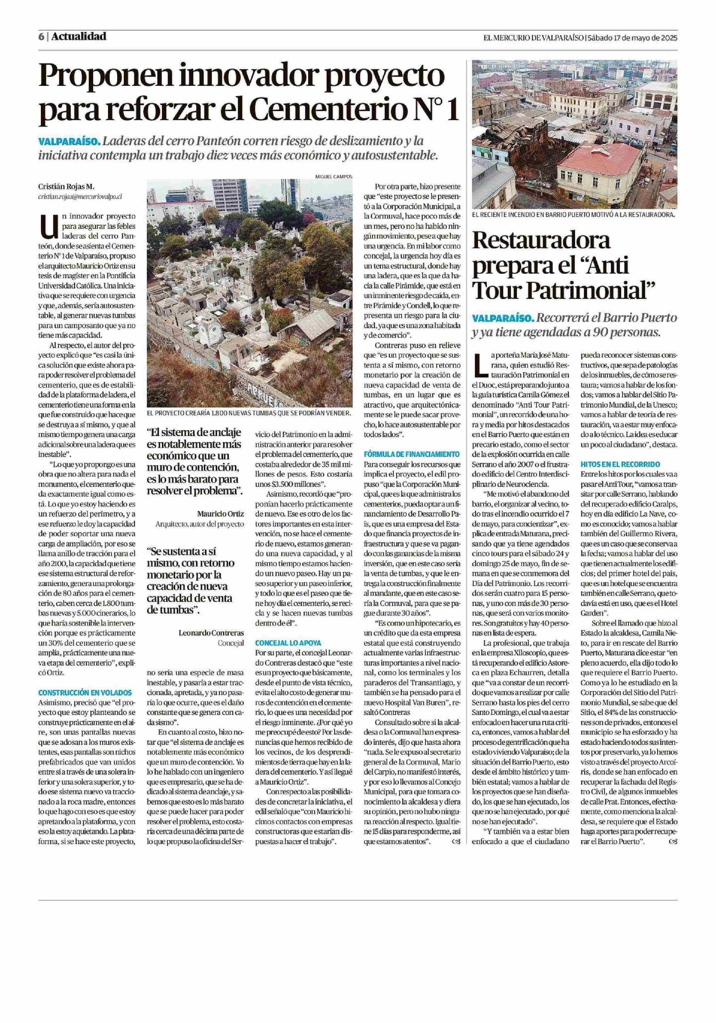 Proponen innovador proyecto para reforzar el Cementerio N”1 17-05-2025 El Mercurio de Valparaíso |