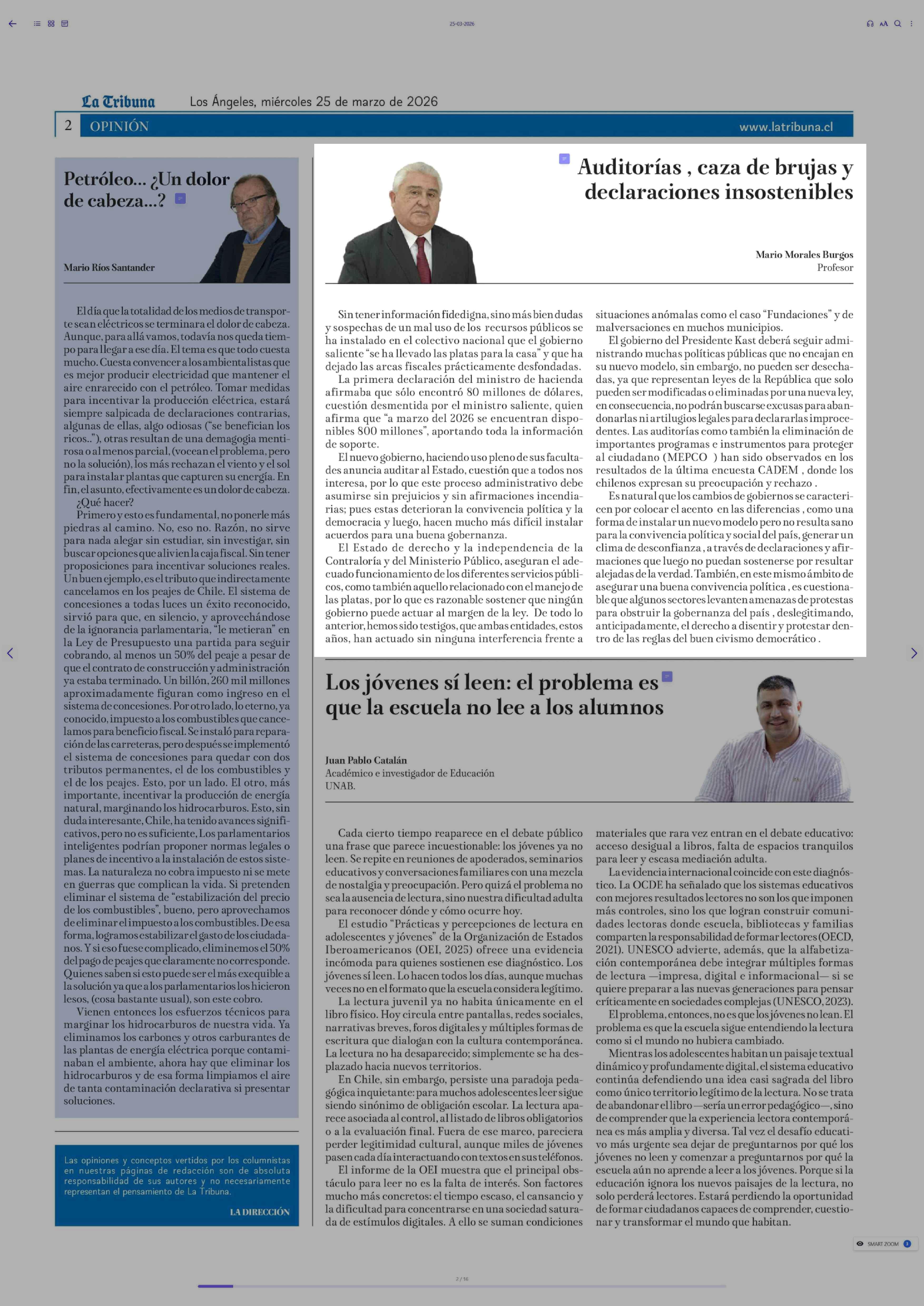 Fecha: 25-03-2026 Sector: Columnas de Opinión Región: Región del Bío-Bío