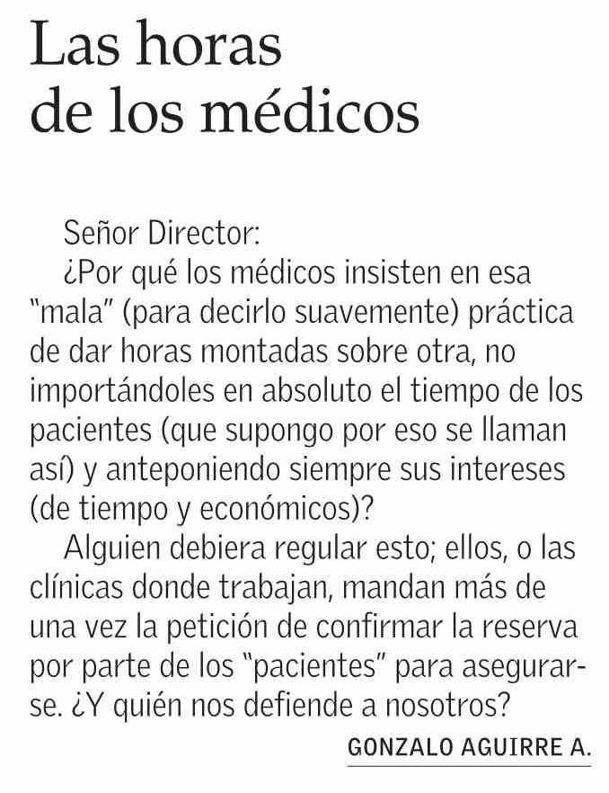 | Título: | CARTAS: Las horas de los médicos |
