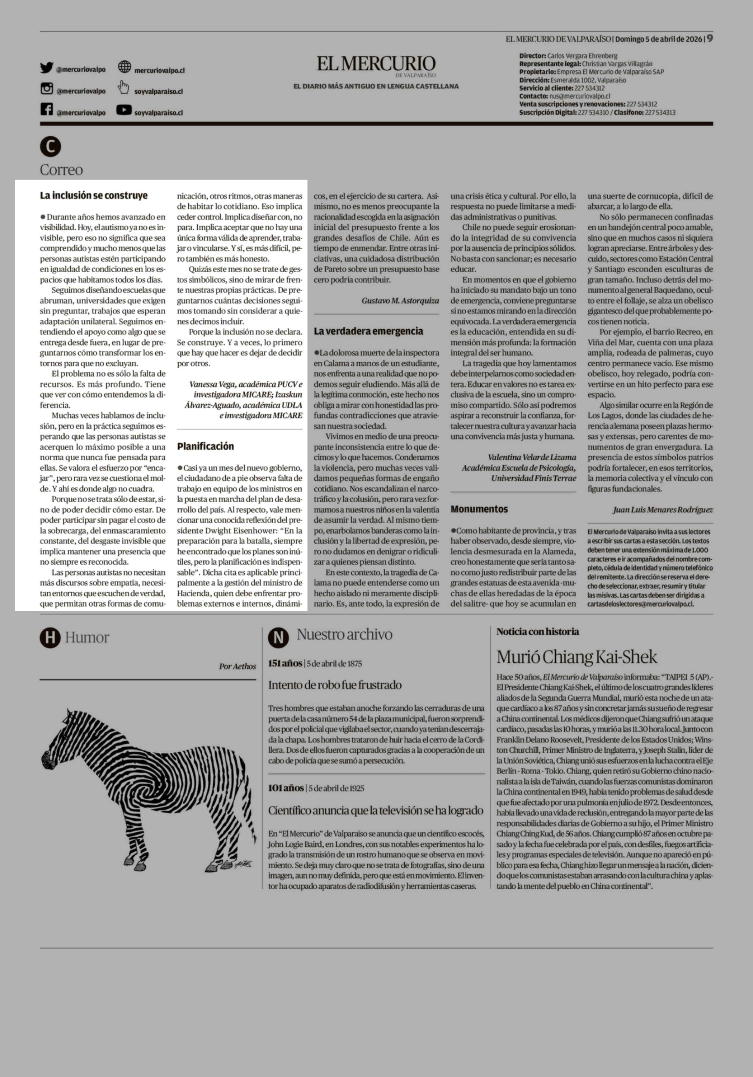 CARTAS: La inclusión se construye 05-04-2026 El Mercurio de Valparaíso |