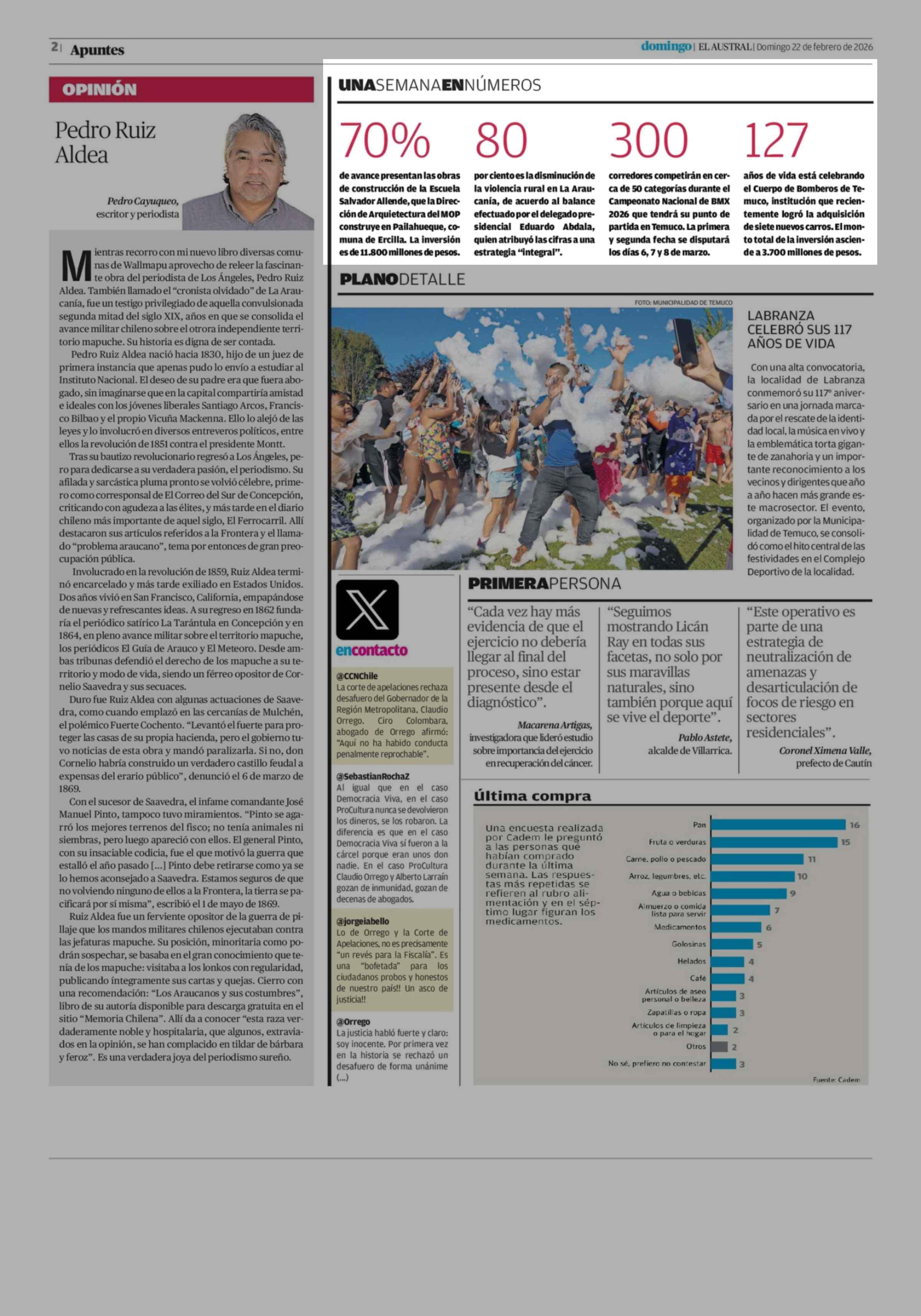 UNA SEMANA EN NÚMEROS 22-02-2026 El Austral de la Araucanía |