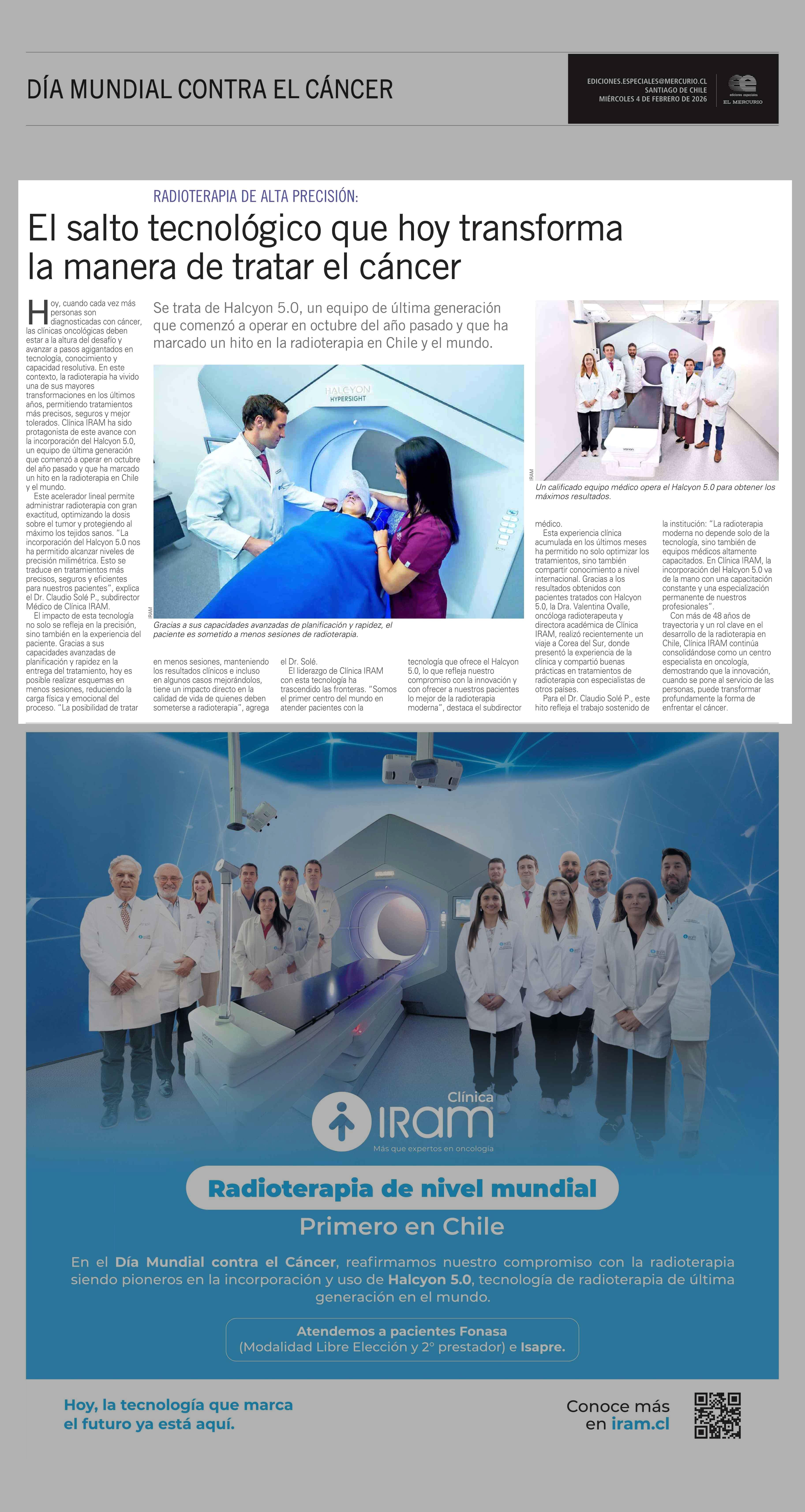 El salto tecnológico que hoy transforma la manera de tratar el cáncer 04-02-2026 El Mercurio |