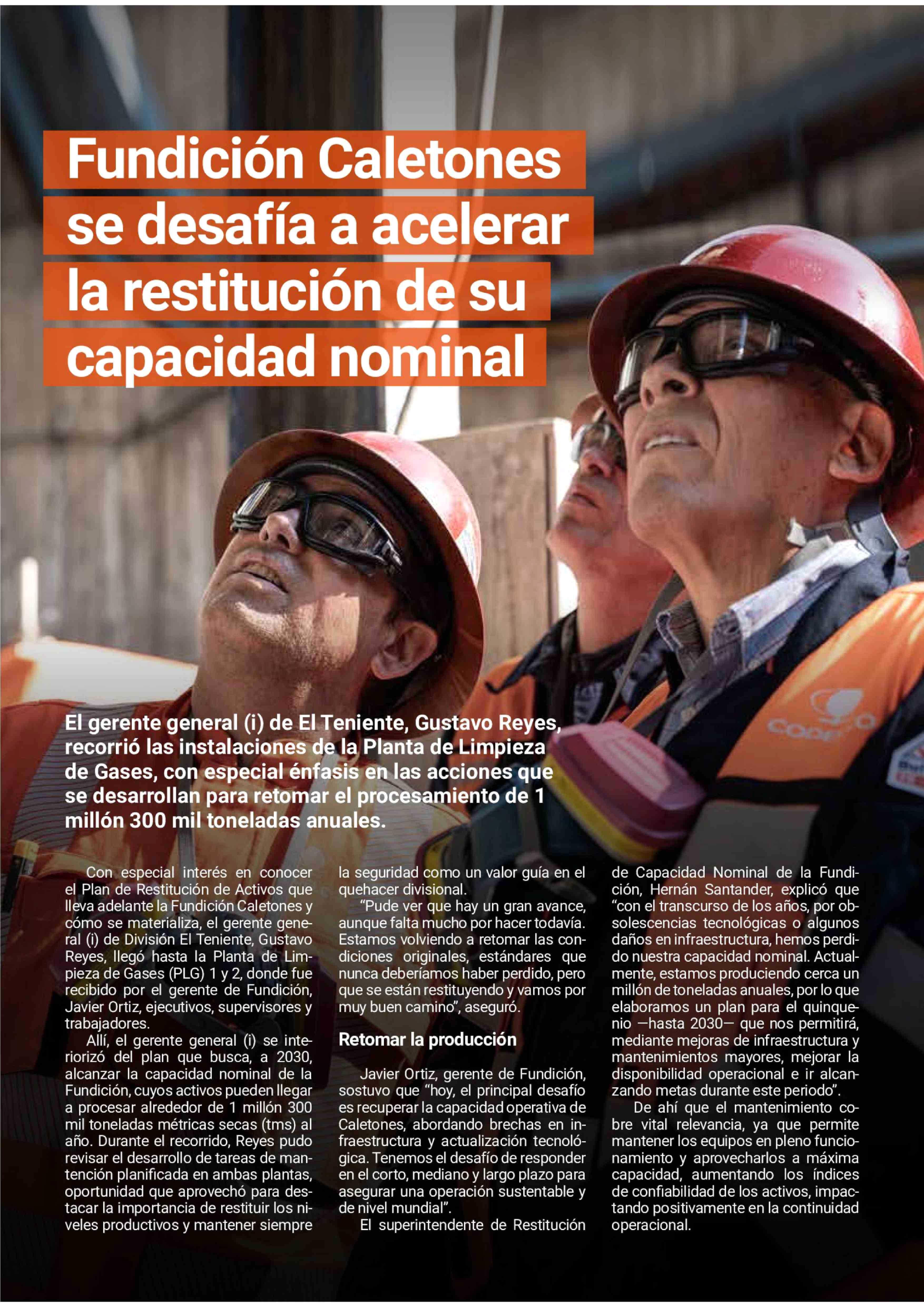 | Título: | Fundición Caletones se desafía a acelerar la restitución de su capacidad nominal |