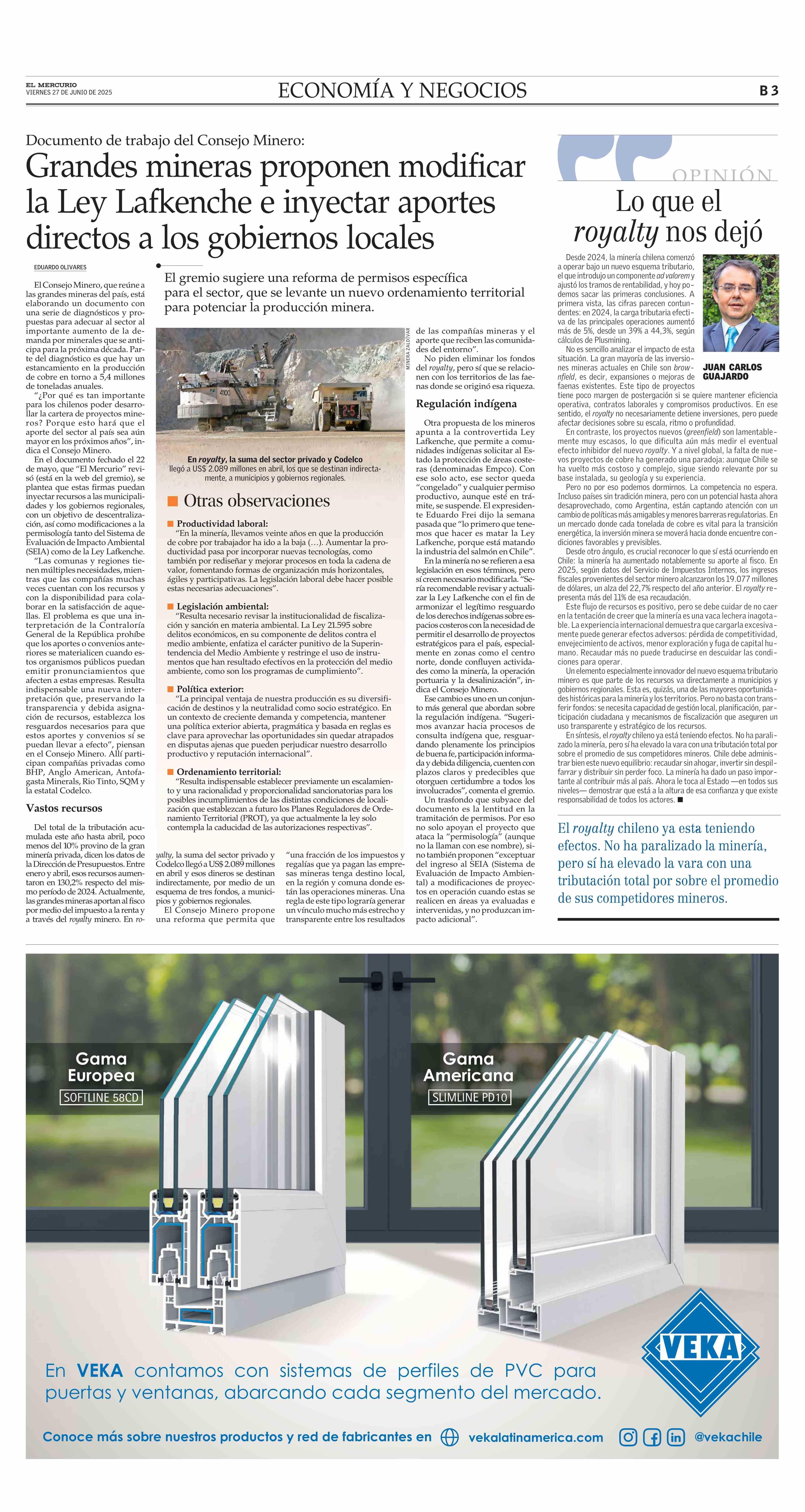 Grandes mineras proponen modificar la Ley Lafkenche e inyectar aportes directos a los gobiernos locales 27-06-2025 El Mercurio |