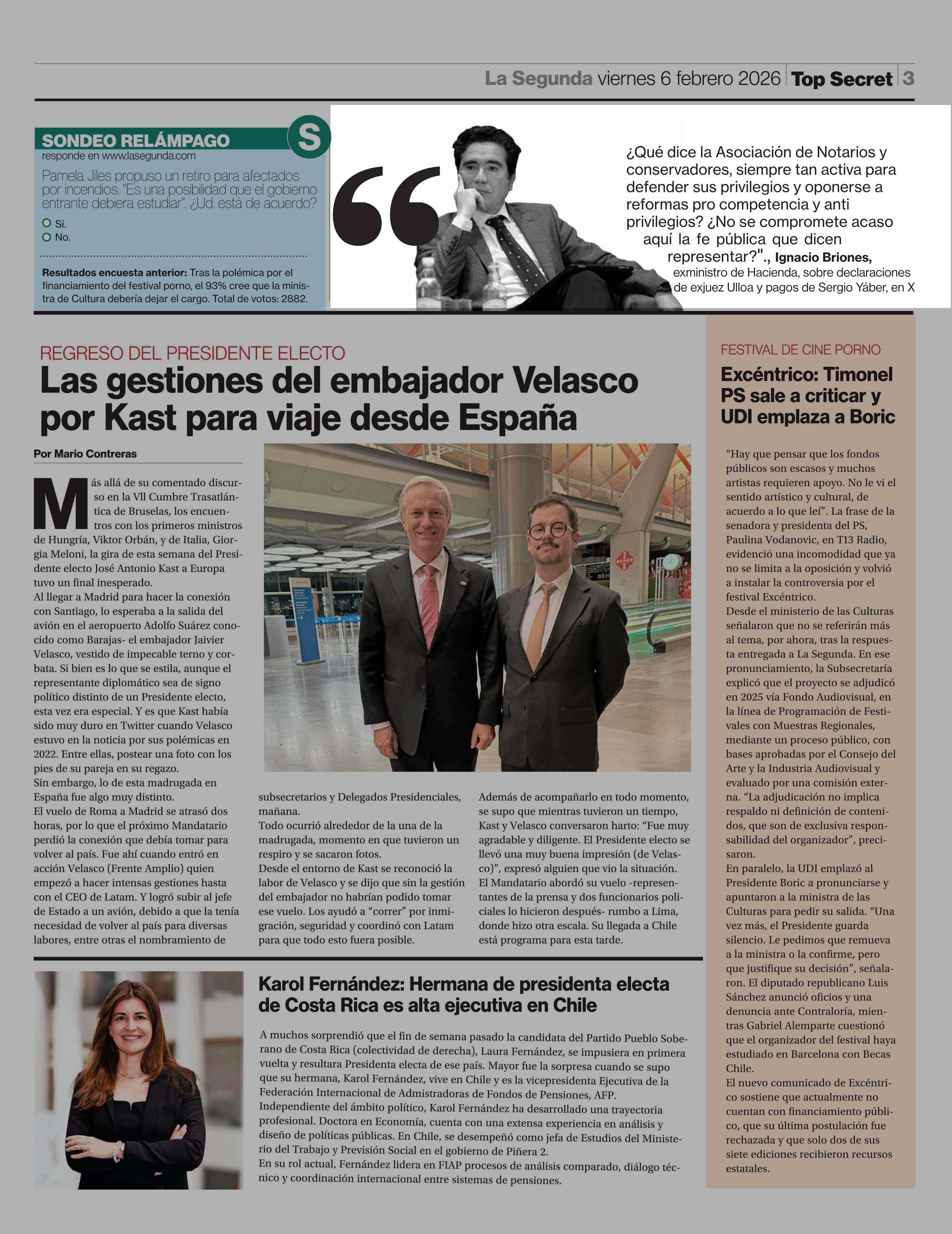 Ignacio Briones, exministro de Hacienda, sobre declaraciones de exjuez Ulloa y pagos de Sergio Yáber, en X 06-02-2026 La Segunda |