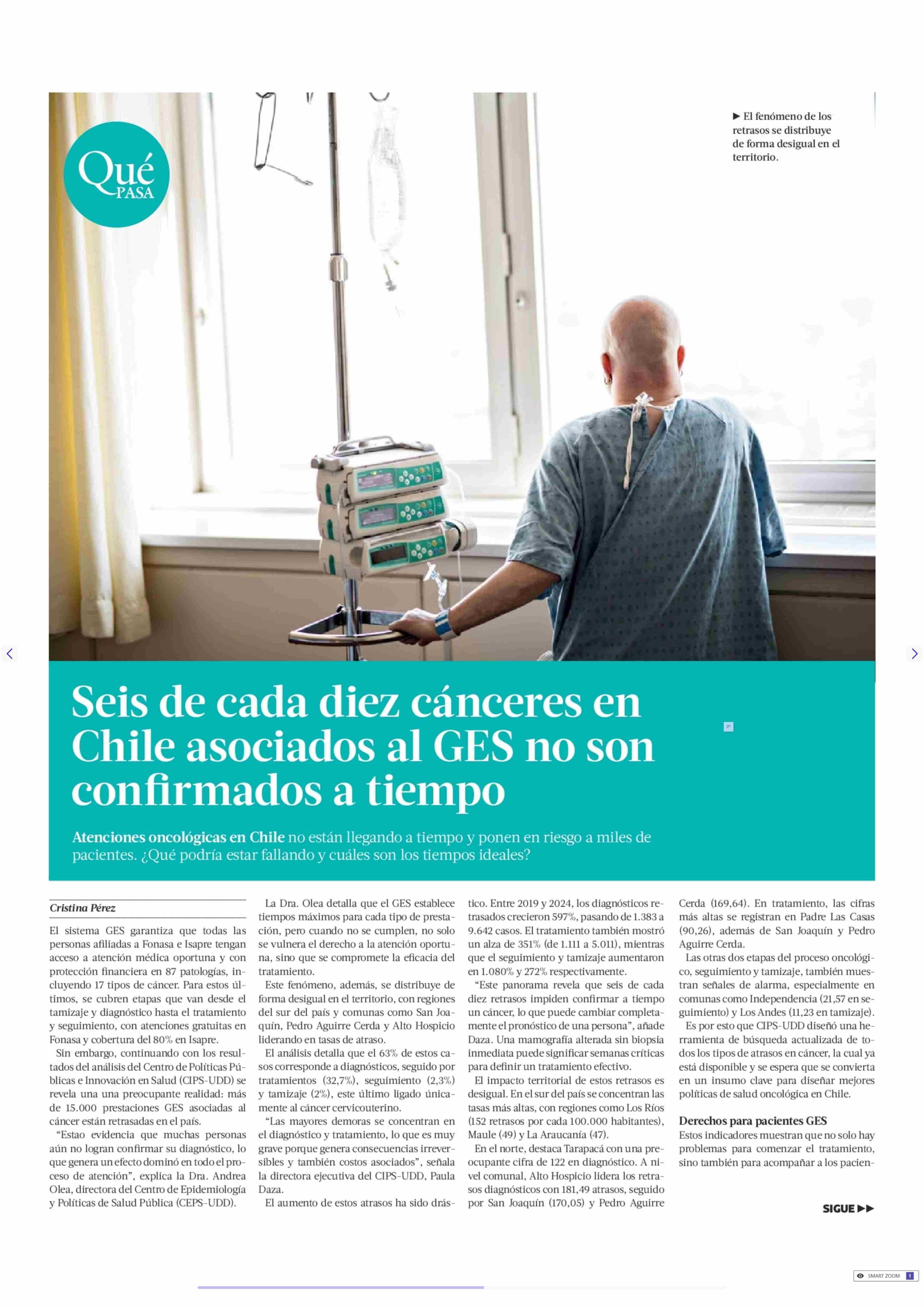 | Título: | Seis de cada diez cánceres en Chile asociados al GÉS no son confirmados a tiempo |