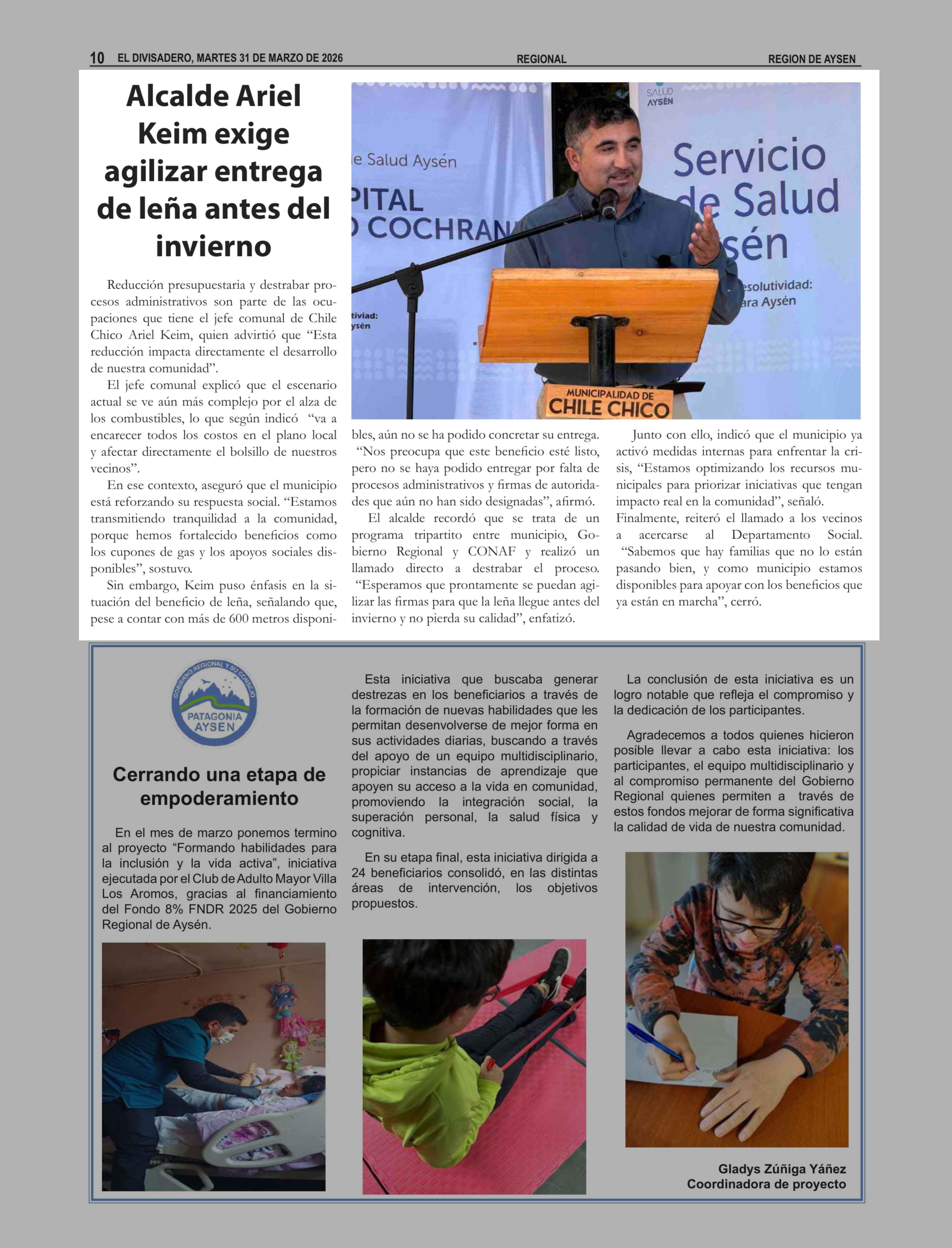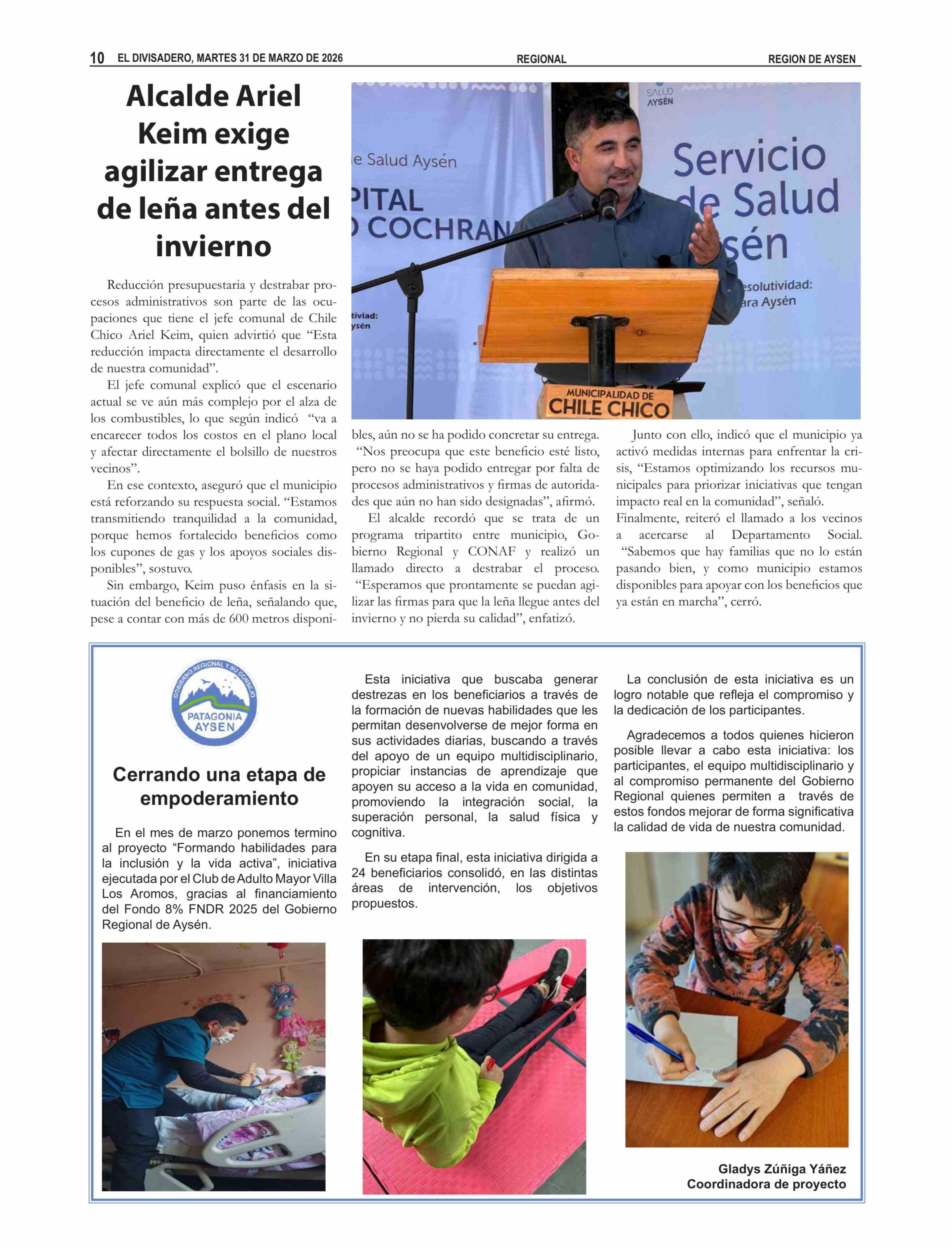 Fecha: 31-03-2026 Sector: Noticia general Región: Región Aysén del General Carlos Ibáñez del Campo