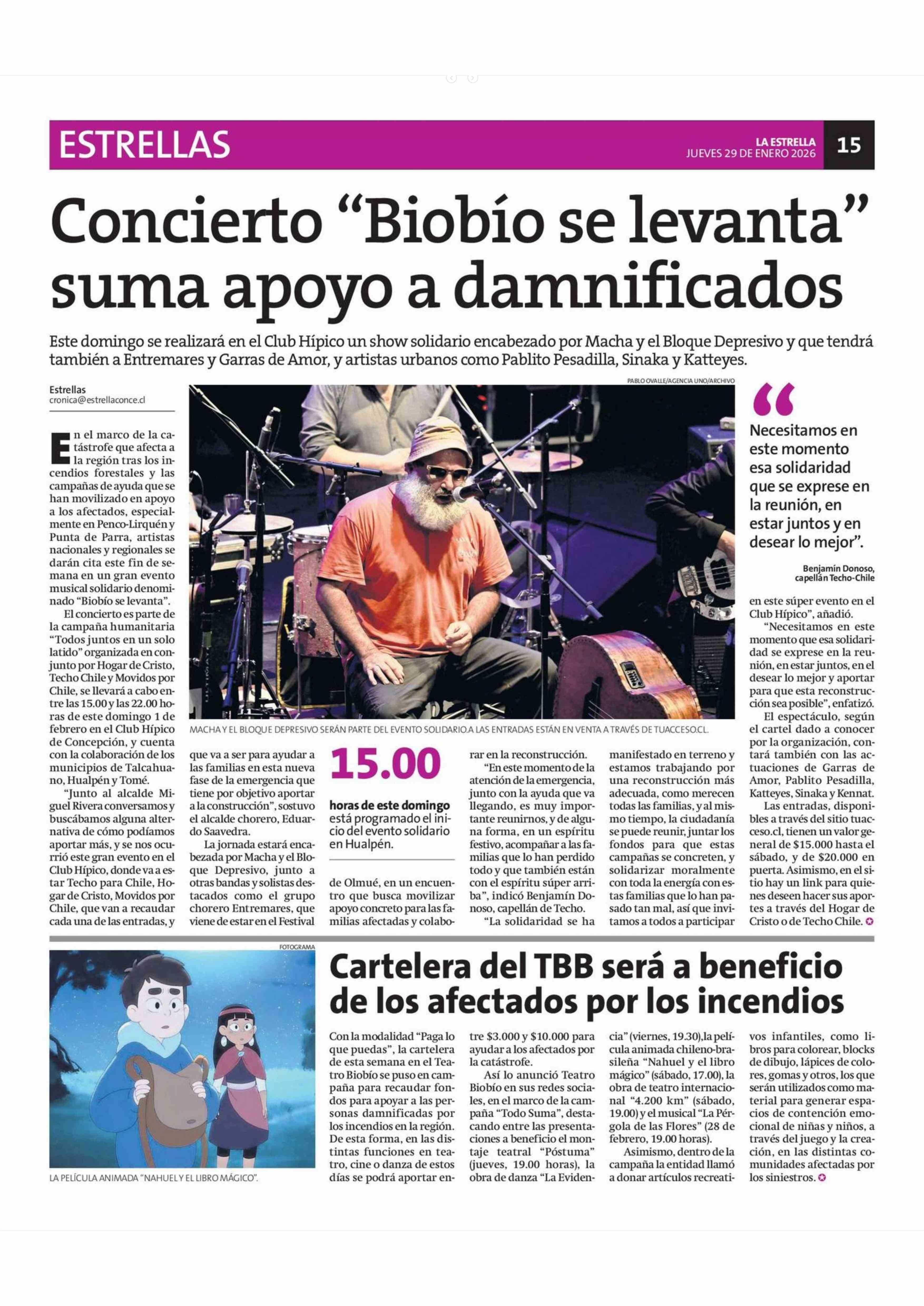 Concierto "Biobio se levanta" suma apoyo a damnificados 29-01-2026 La Estrella de Concepción |