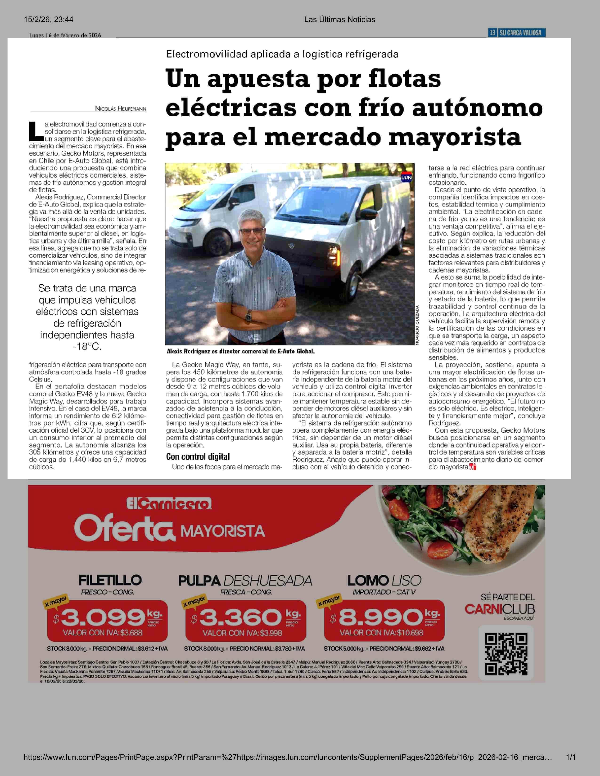 Título: Un apuesta por flotas eléctricas con frío autónomo para el mercado mayorista