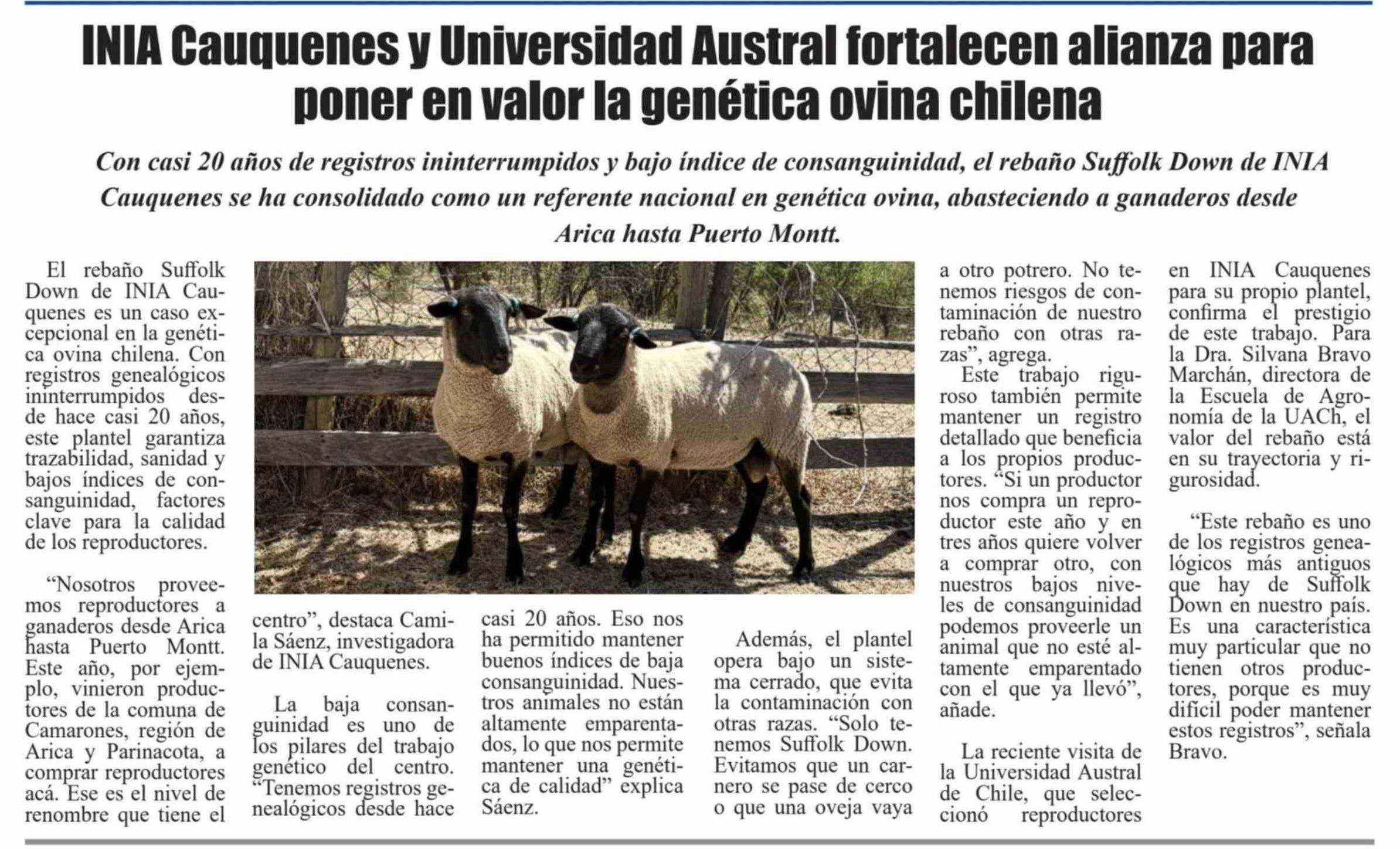 | Título: | INIA Cauquenes y Universidad Austral fortalecen alianza para poner en valor la genética ovina chilena |