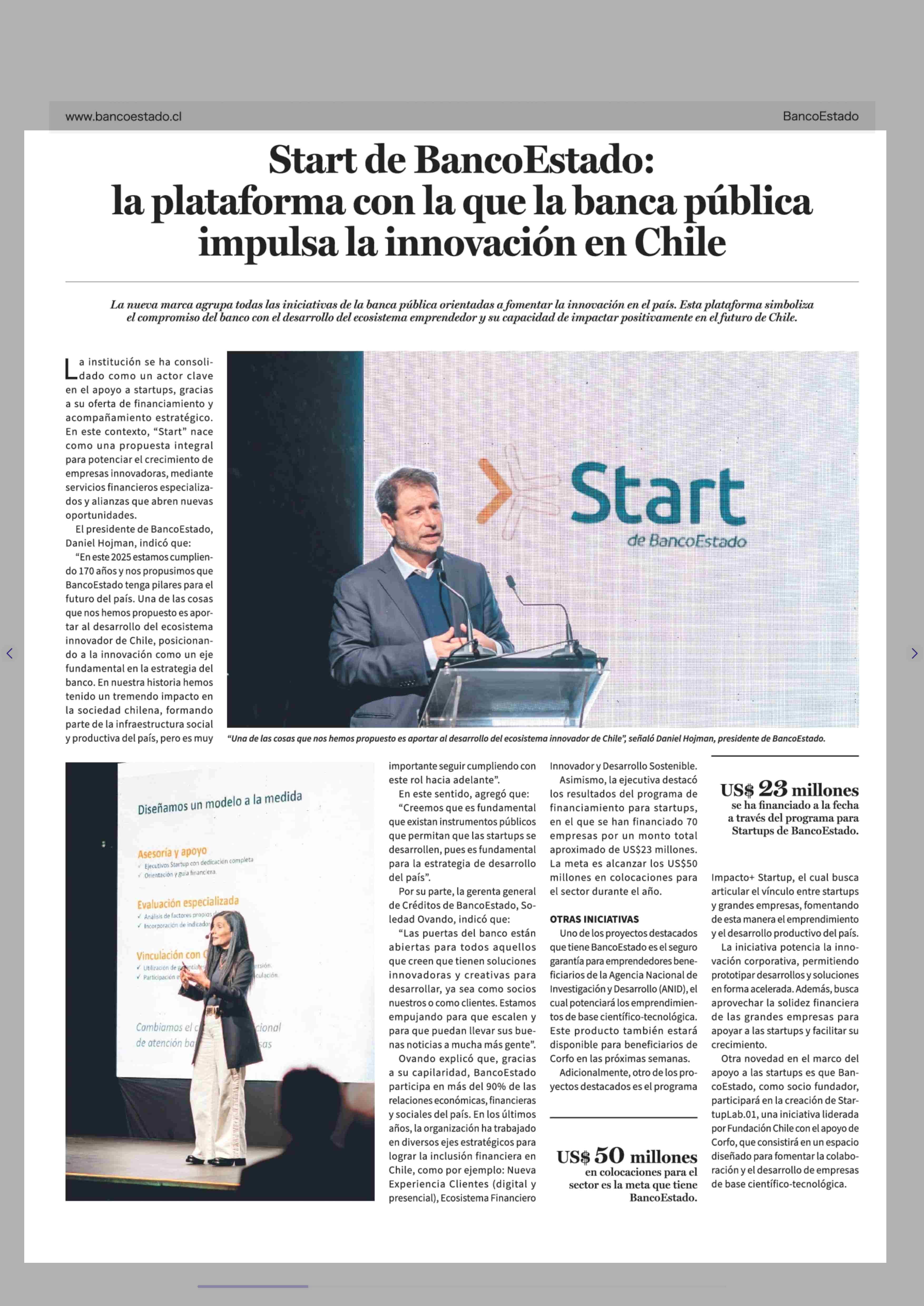Start de BancoEstado: la plataforma con la que la banca pública impulsa la innovación en Chile 01-06-2025 La Tercera |