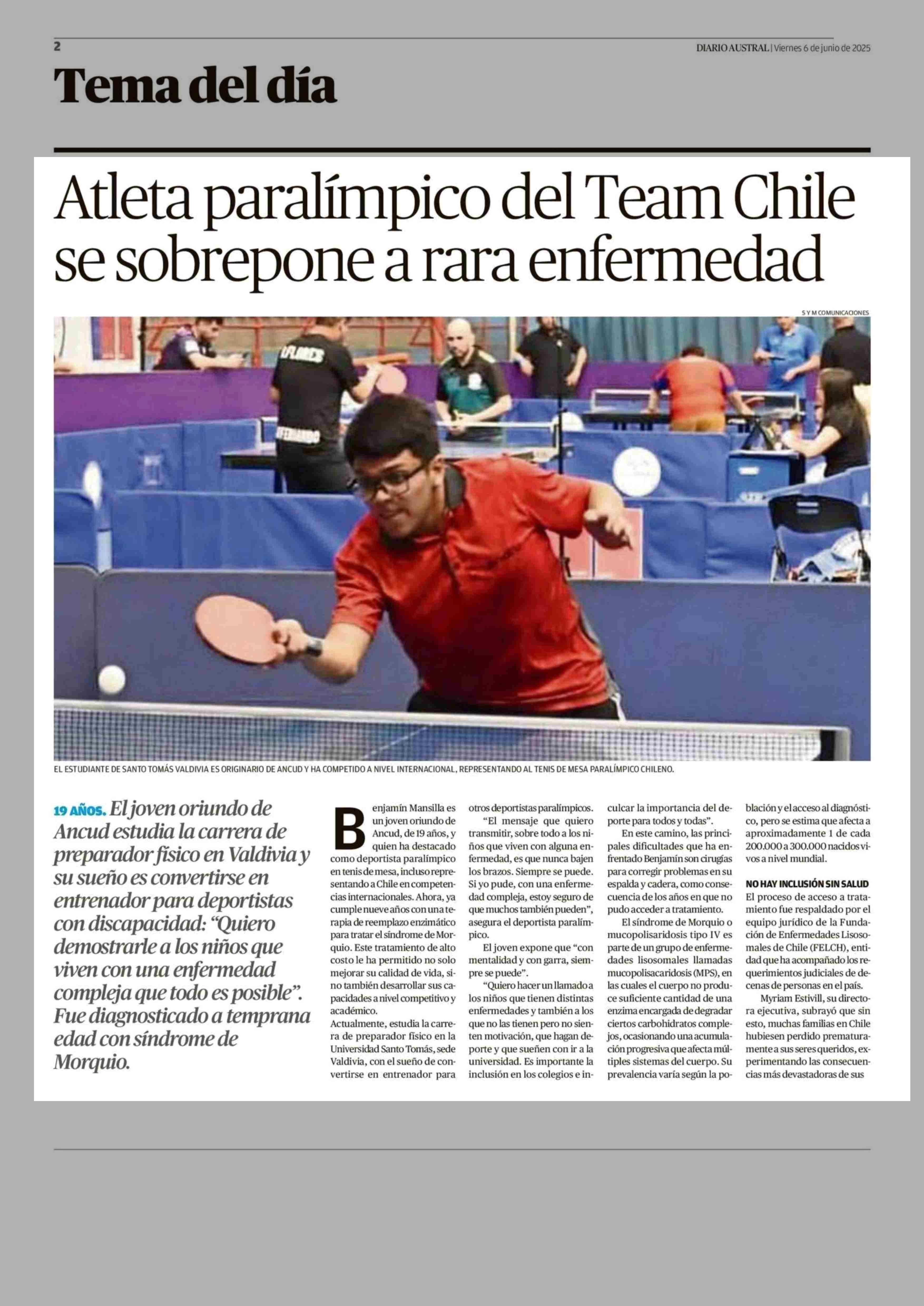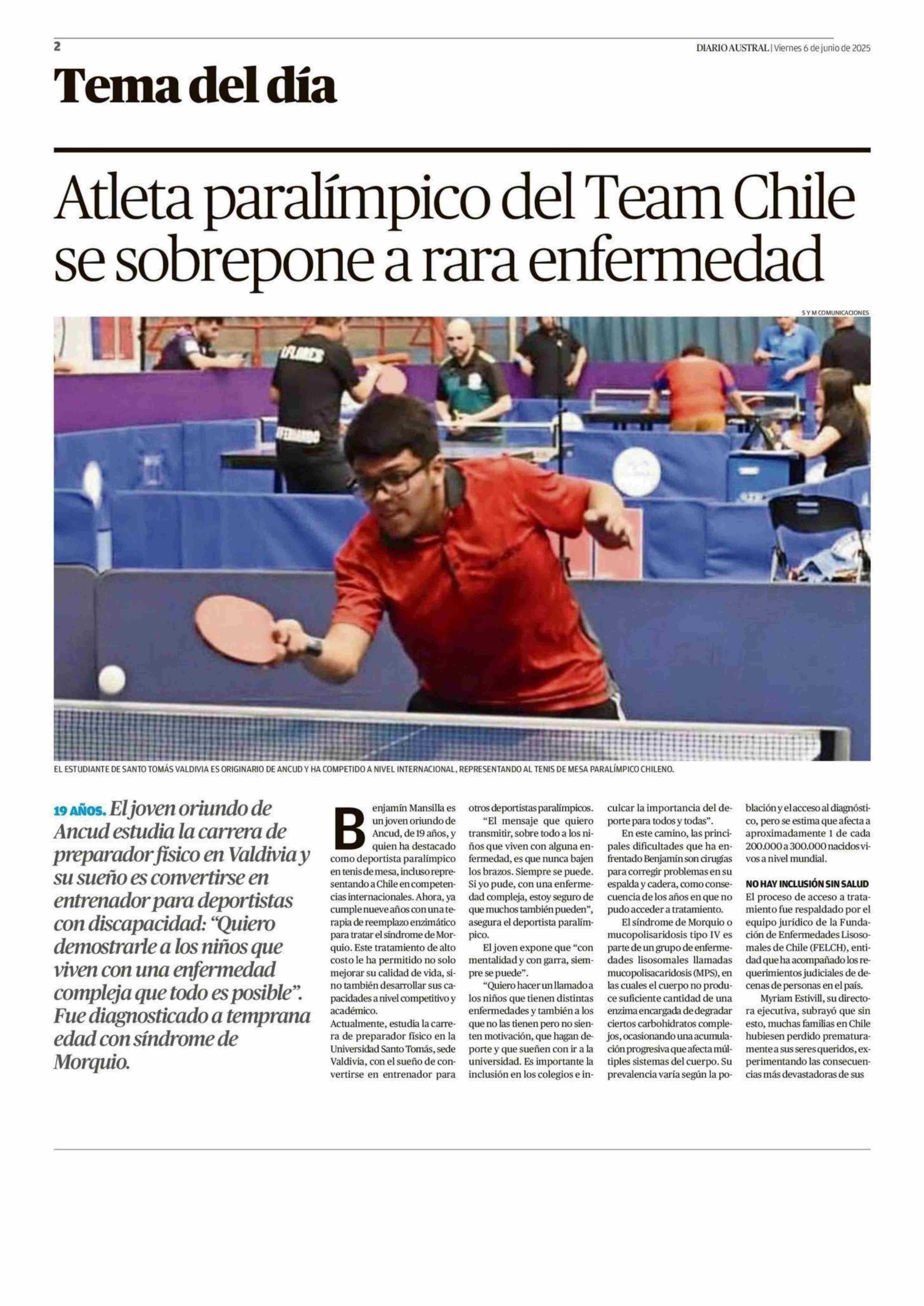 Título: Atleta paralímpico del Team Chile se sobrepone a rara enfermedad