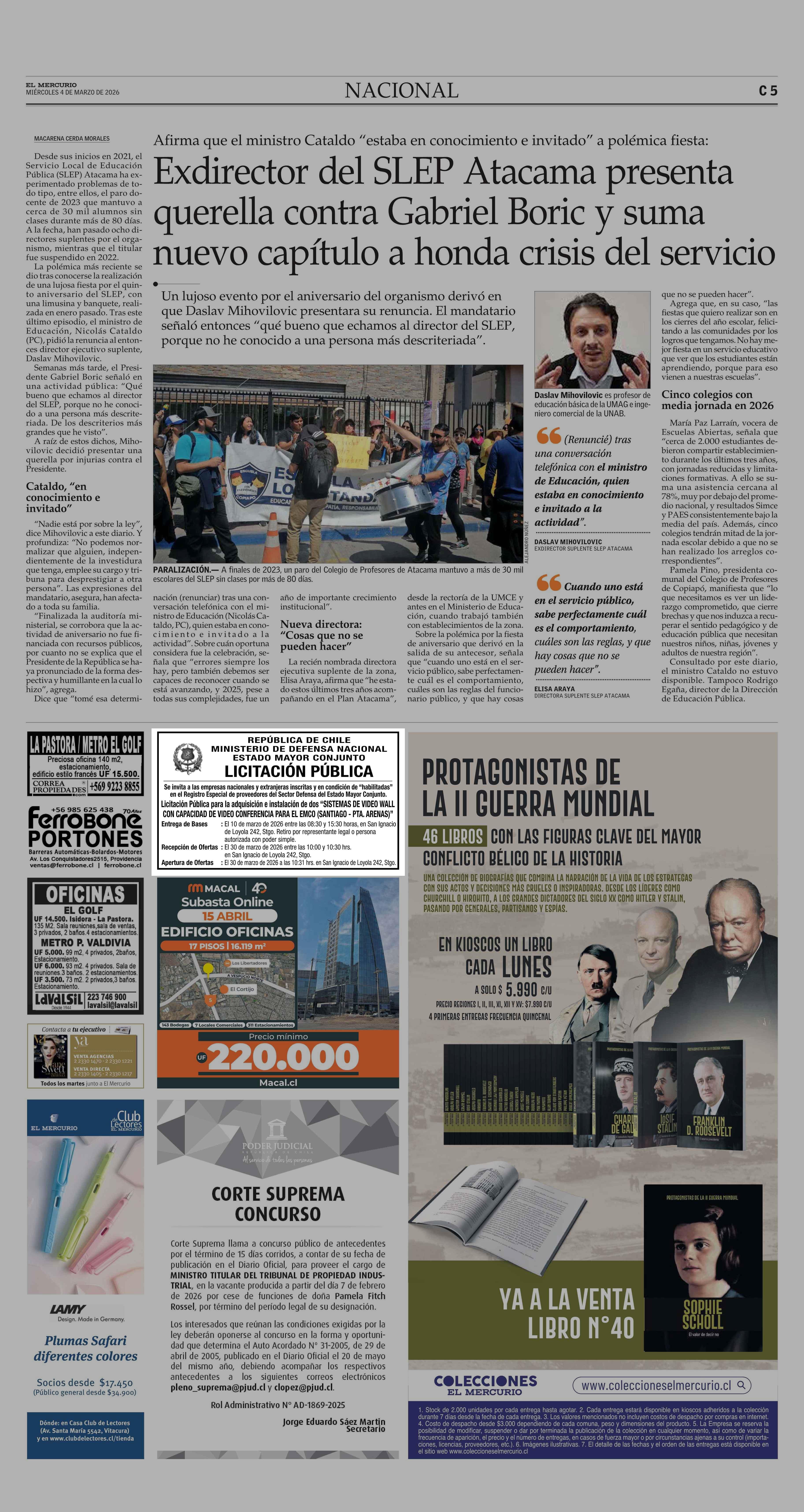 AVISO LICITACIONES: 04-03-2026 El Mercurio |