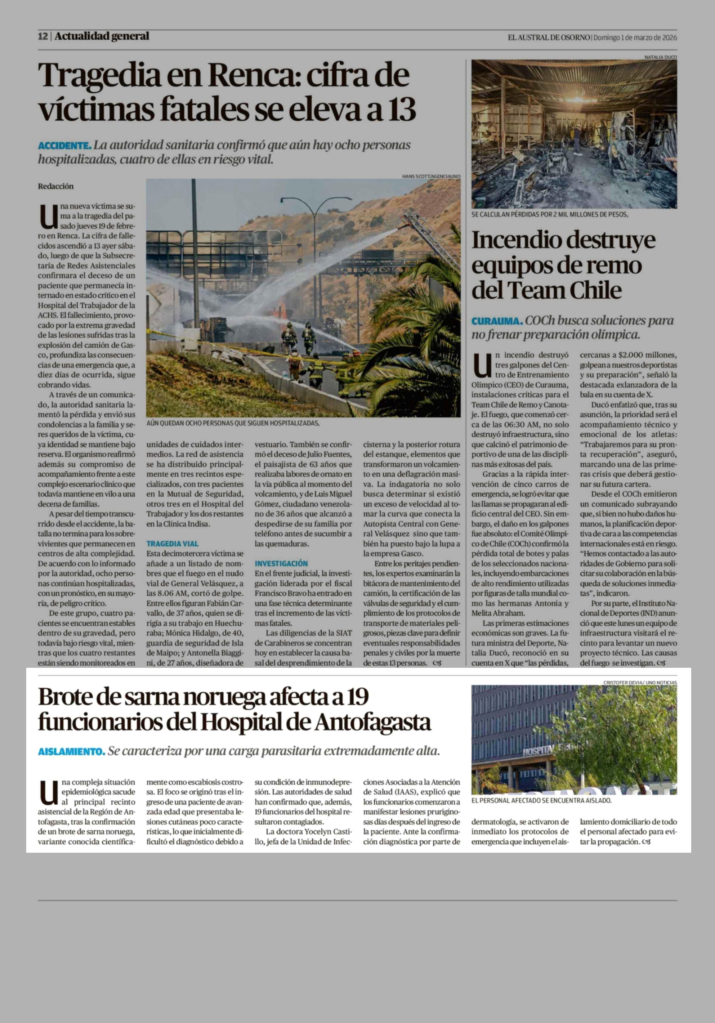 Brote de sarna noruega afecta a 19 funcionarios del Hospital de Antofagasta 01-03-2026 El Austral de Osorno |