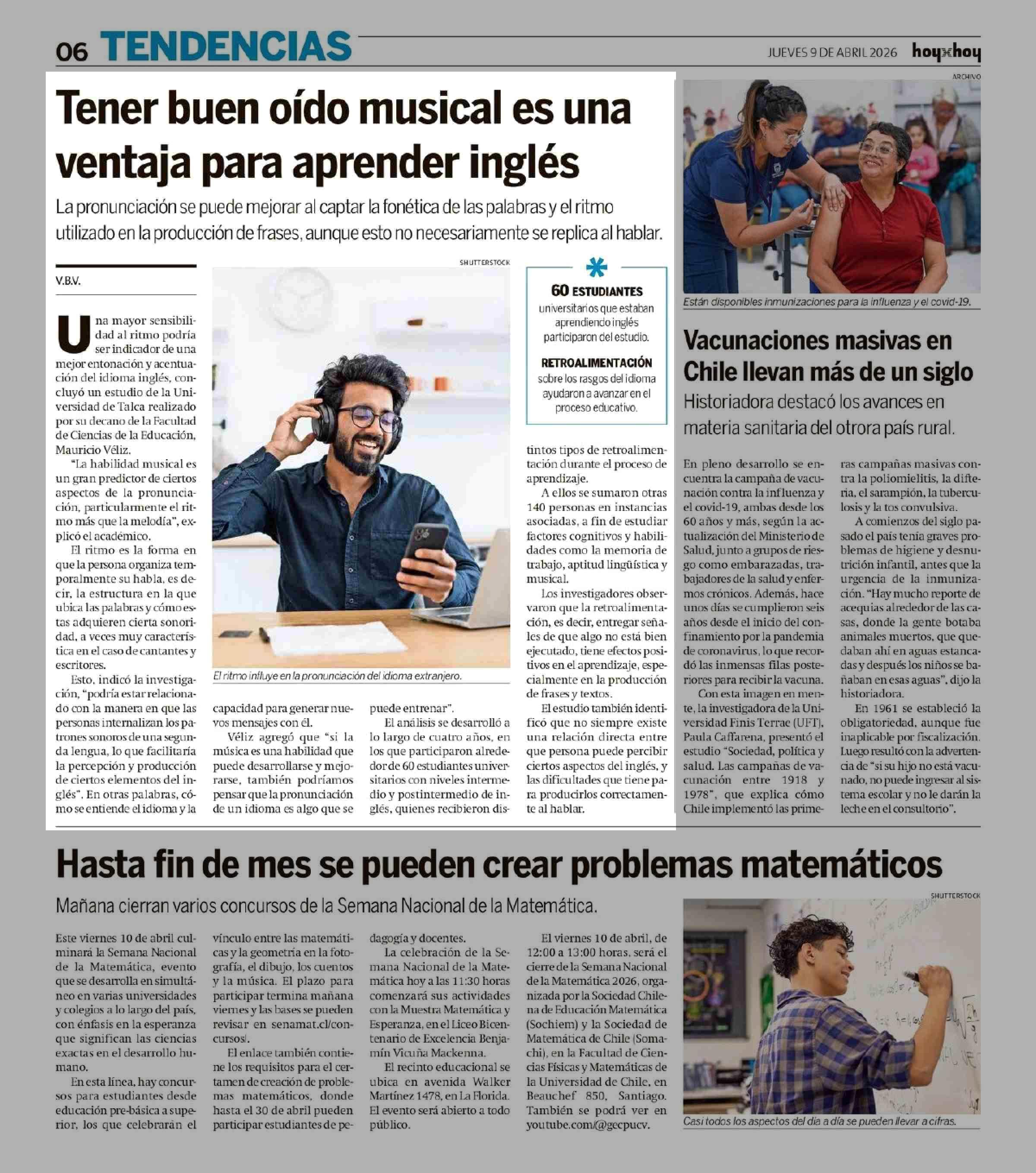 Tener buen oído musical es una ventaja para aprender inglés 09-04-2026 Hoy x Hoy |