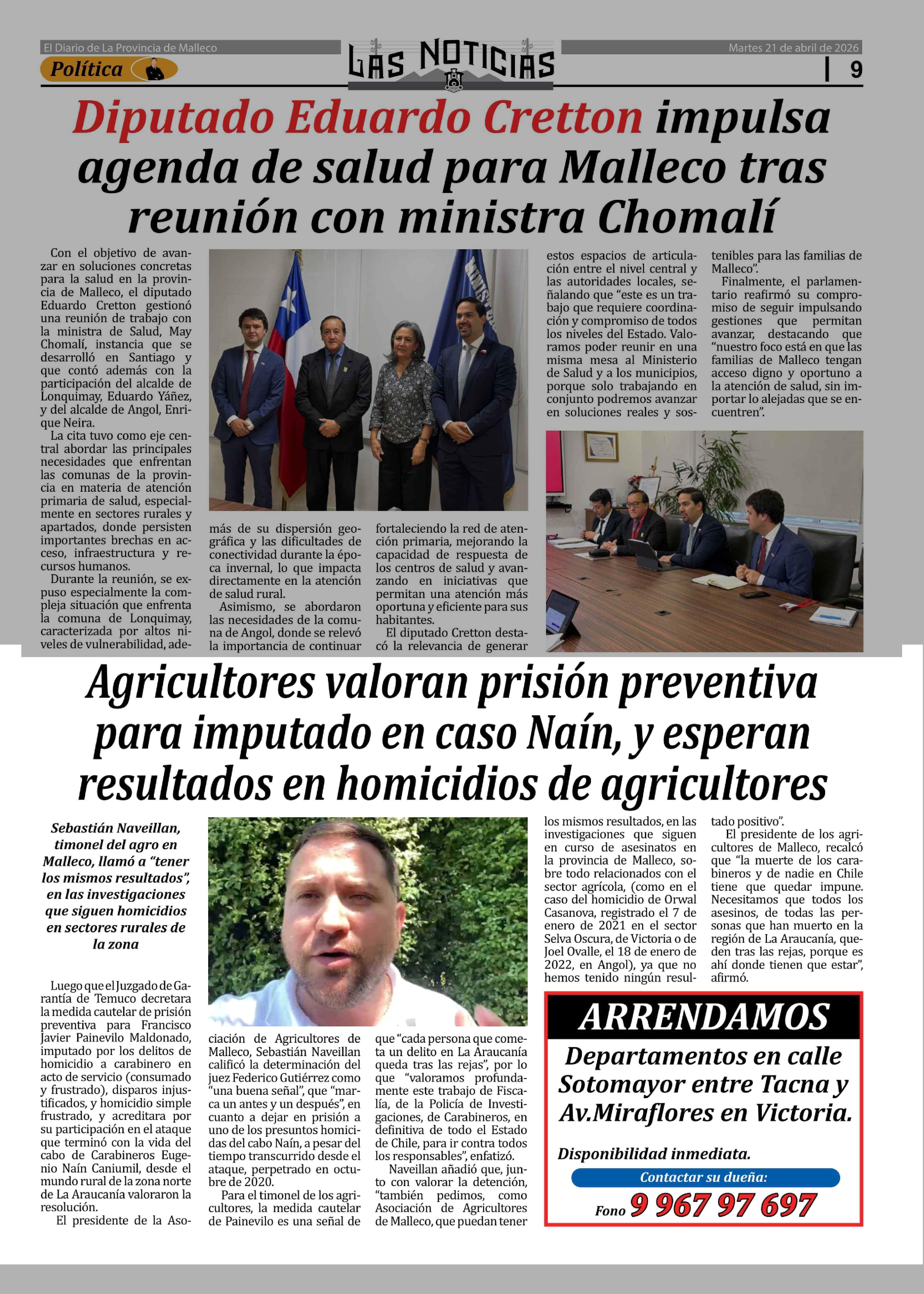 | Fecha: | 21-04-2026 | Sector: | Noticia general | Región: | Región de la Araucanía |