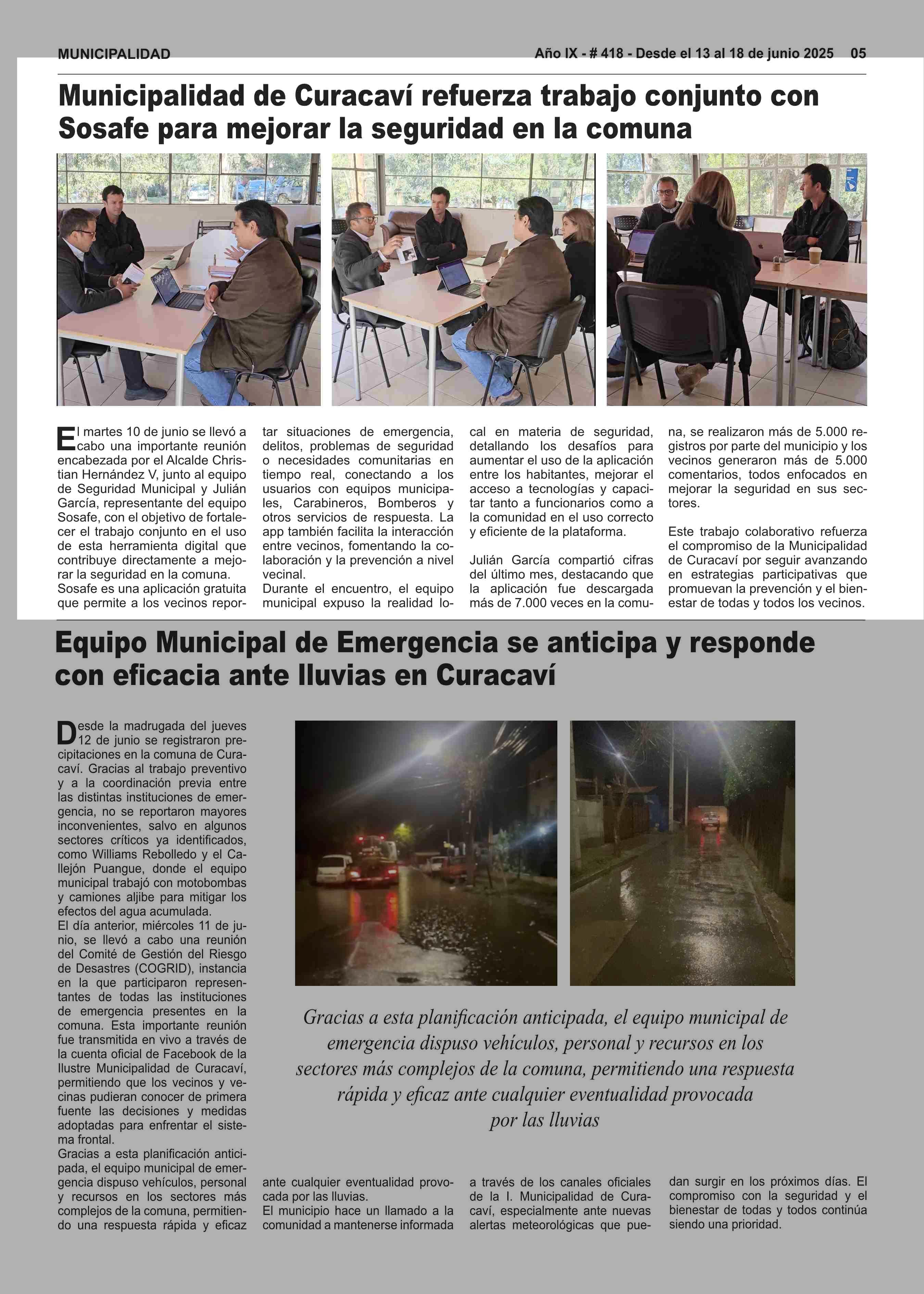 | Título: | Municipalidad de Curacaví refuerza trabajo conjunto con Sosafe para mejorar la seguridad en la comuna |