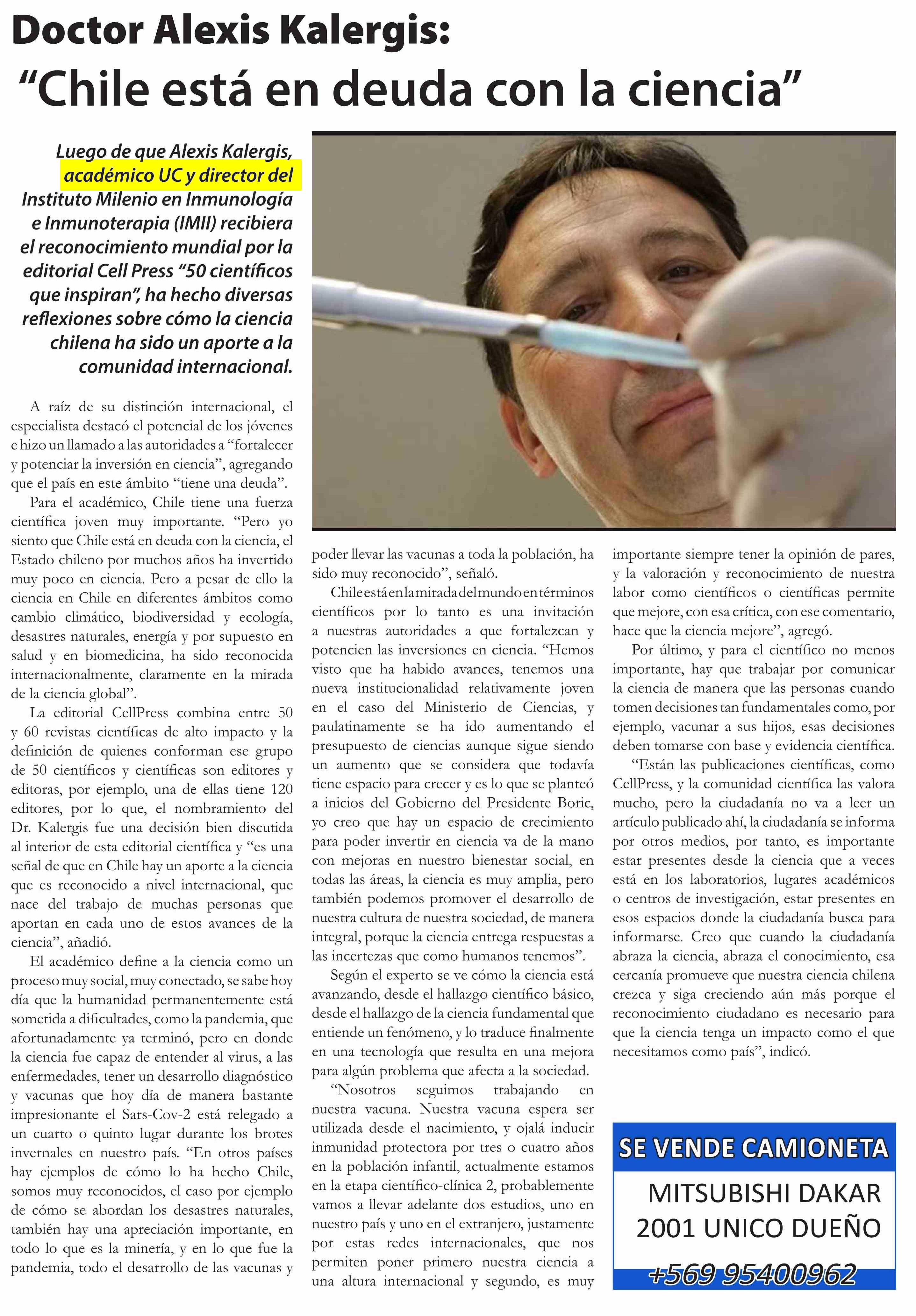 | Título: | Doctor Alexis Kalergis: “Chile está en deuda con la ciencia” |