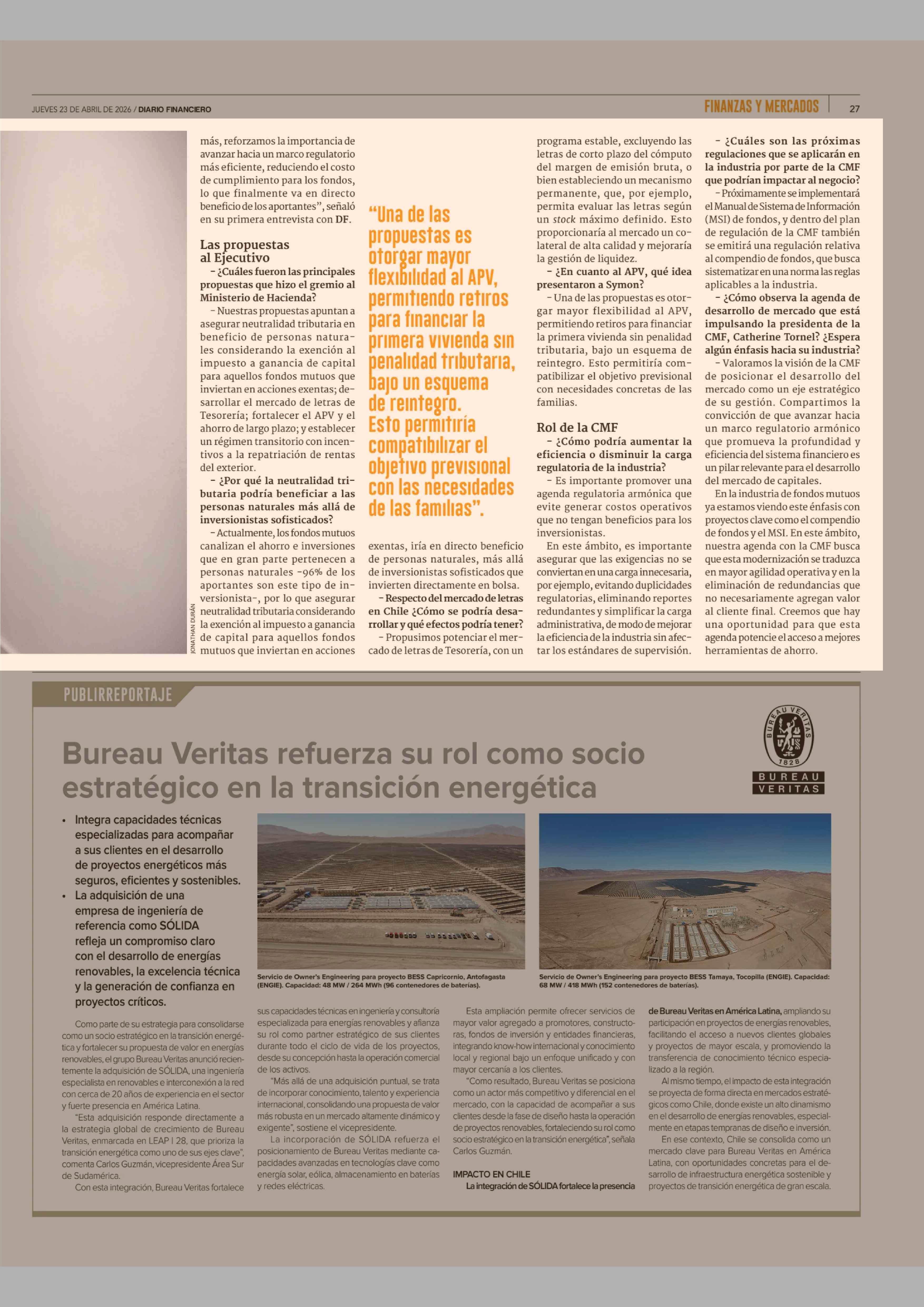 Fuente: Diario Financiero (Diario Financiero) Página(s): 26-27