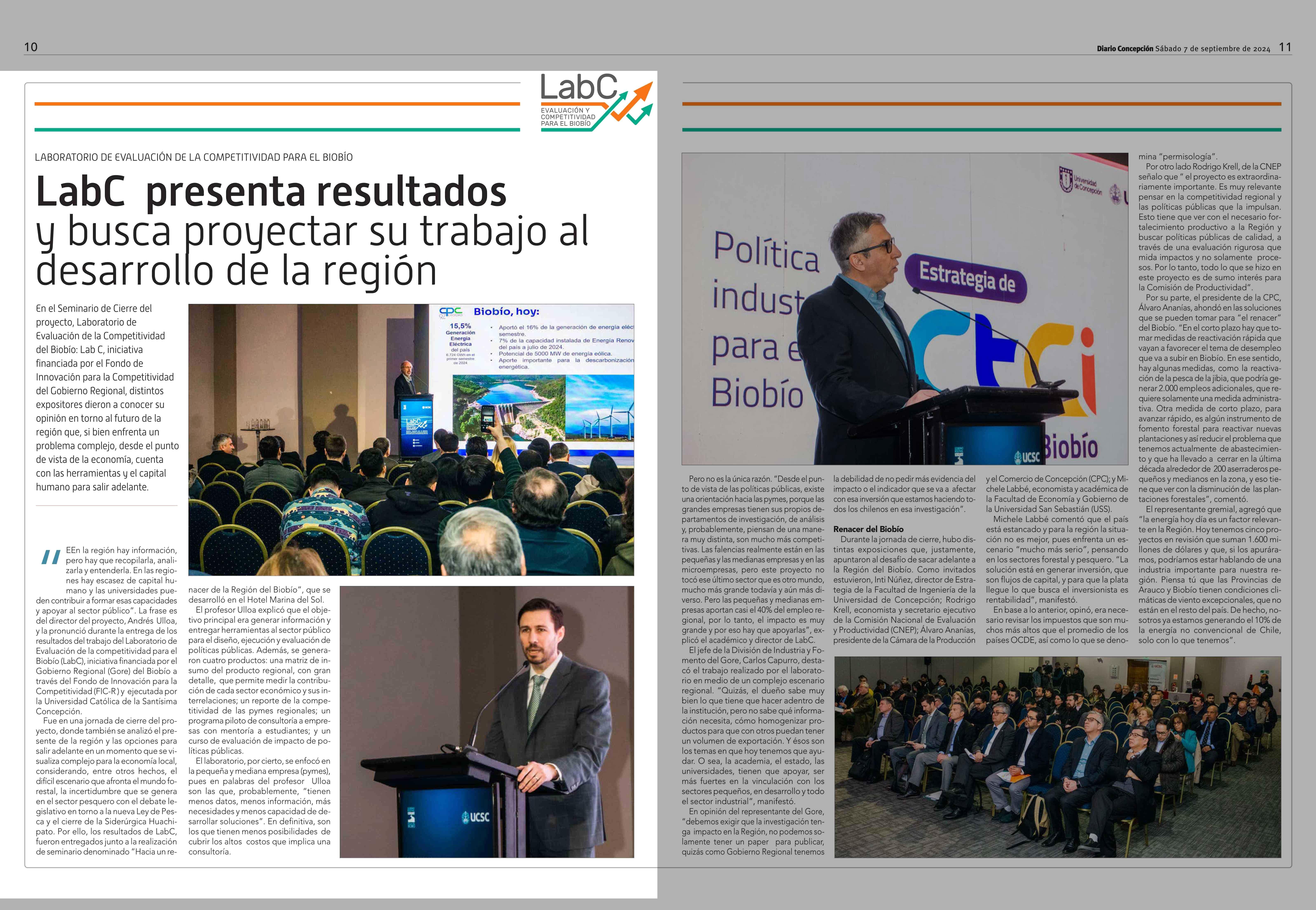 LabC presenta resultados y busca proyectar su trabajo al desarrollo de la región 07-09-2024 Diario Concepción |