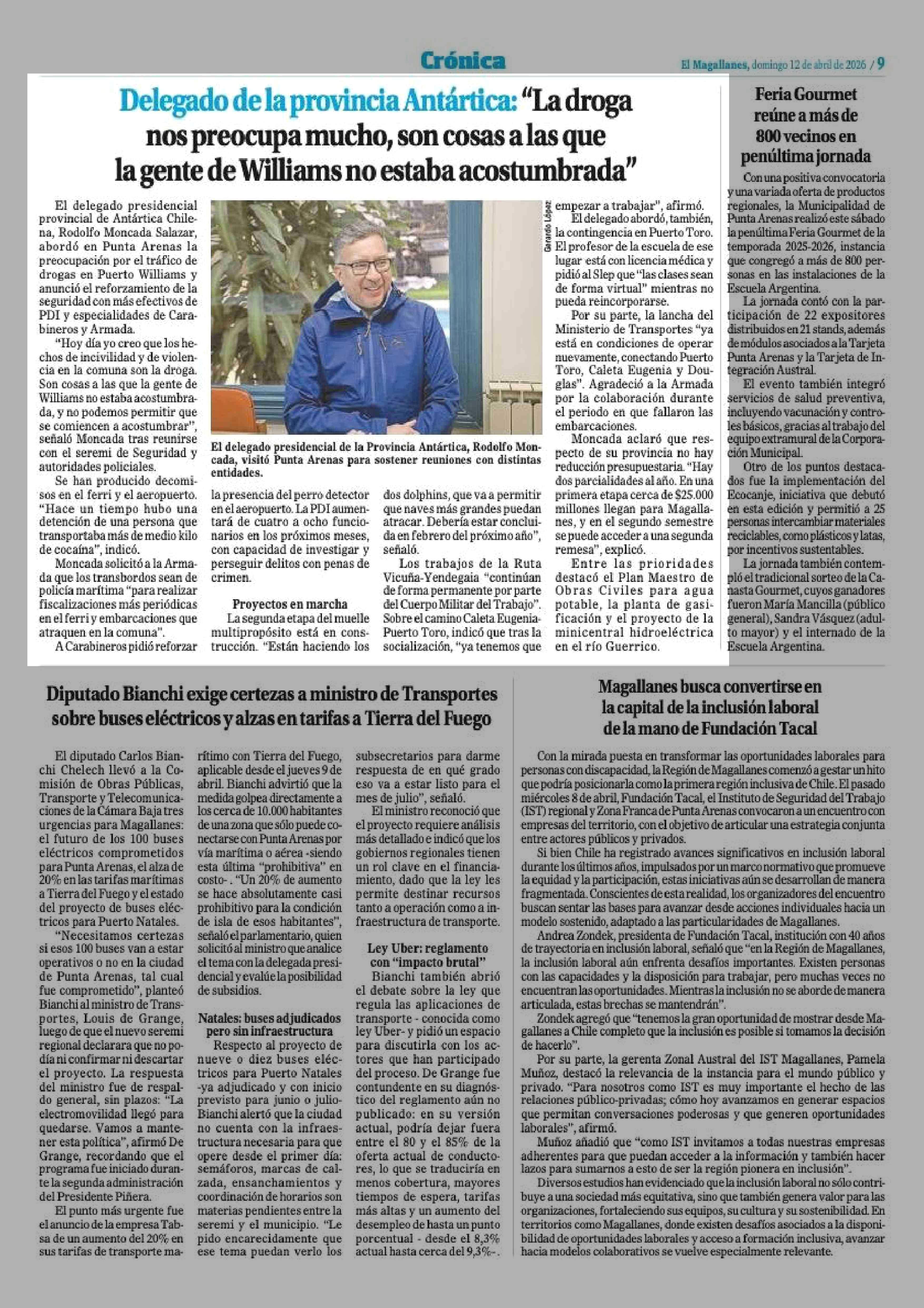 Fecha: 12-04-2026 Sector: Noticia general Región: Región de Magallanes y de la Antártica Chilena