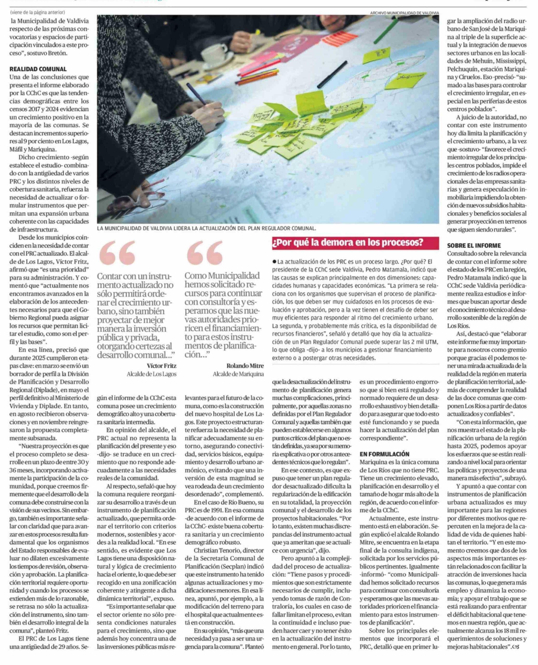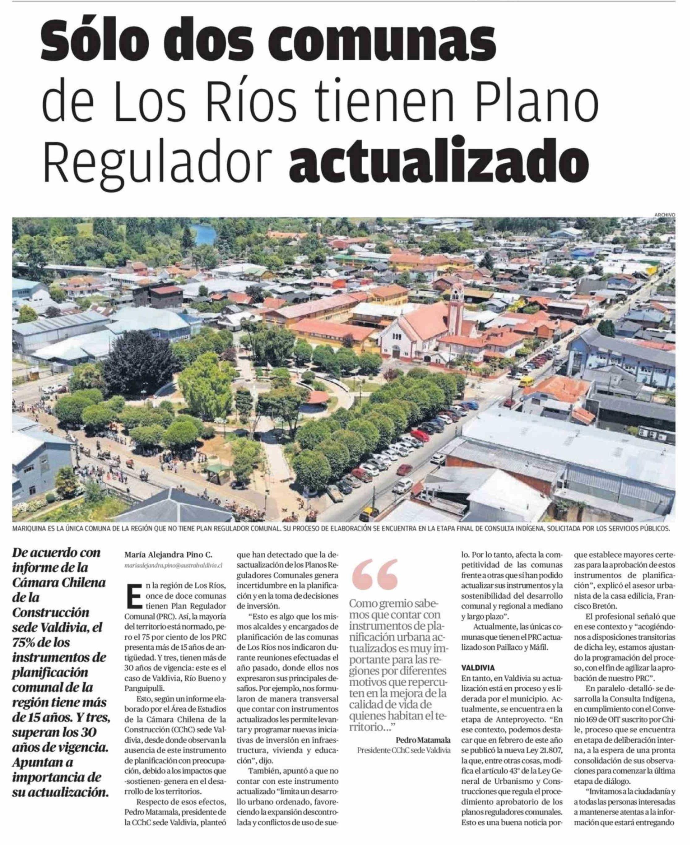 Sólo dos comunas de Los Ríos tienen Plano Regulador actualizado 22-03-2026 Diario Austral Región de Los Ríos |
