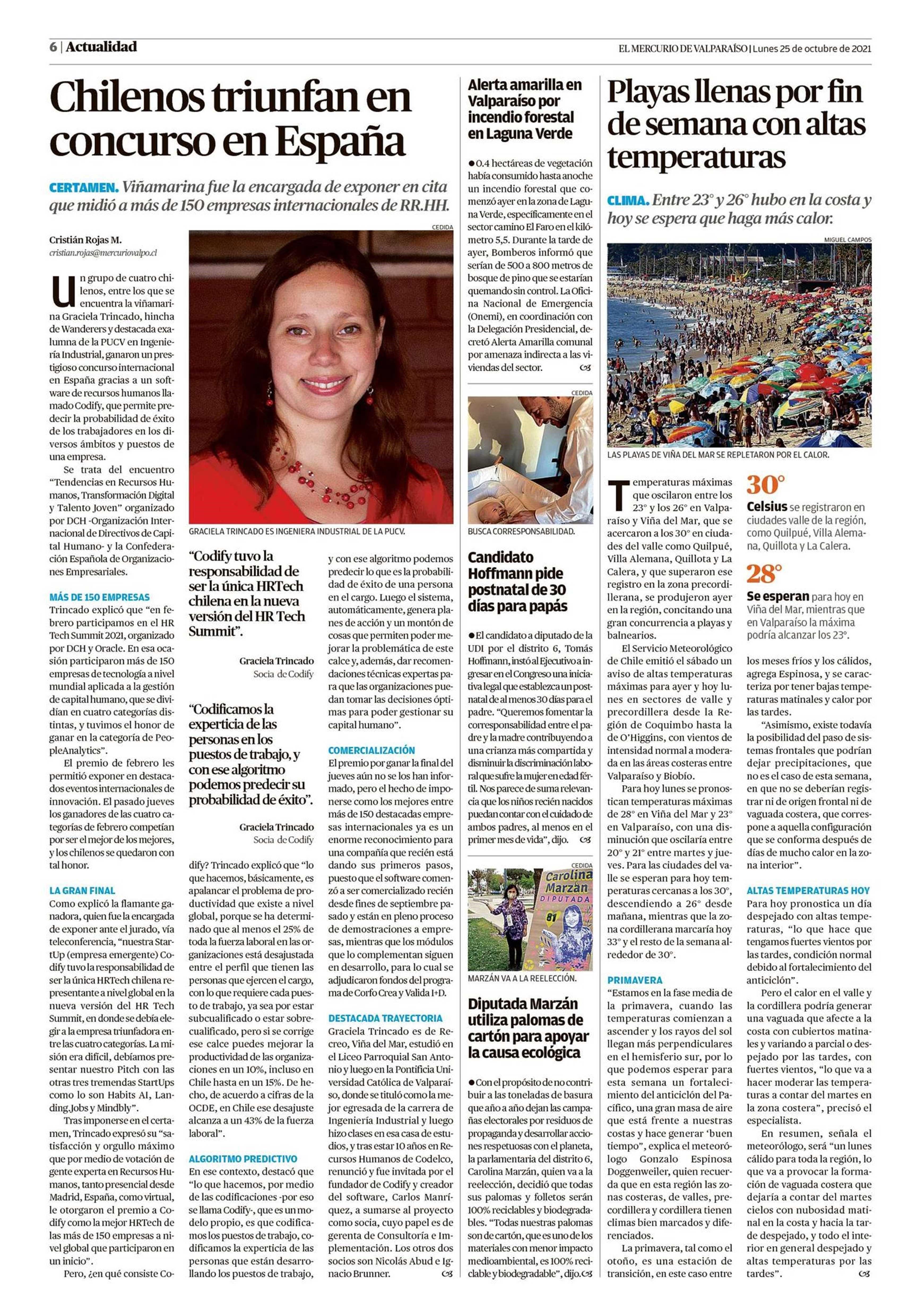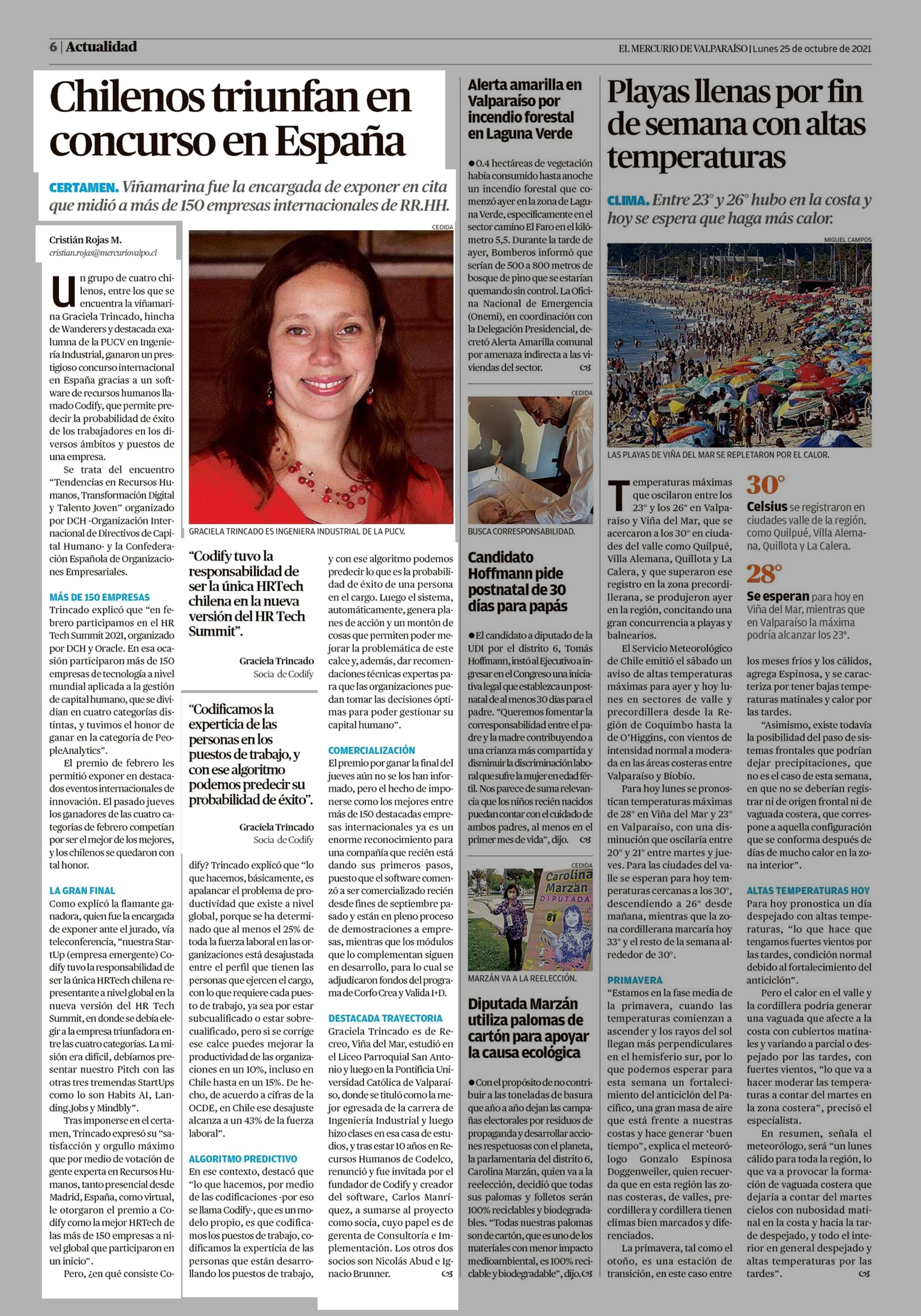 Chilenos triunfan en concurso en España 25-10-2021 El Mercurio de Valparaíso |
