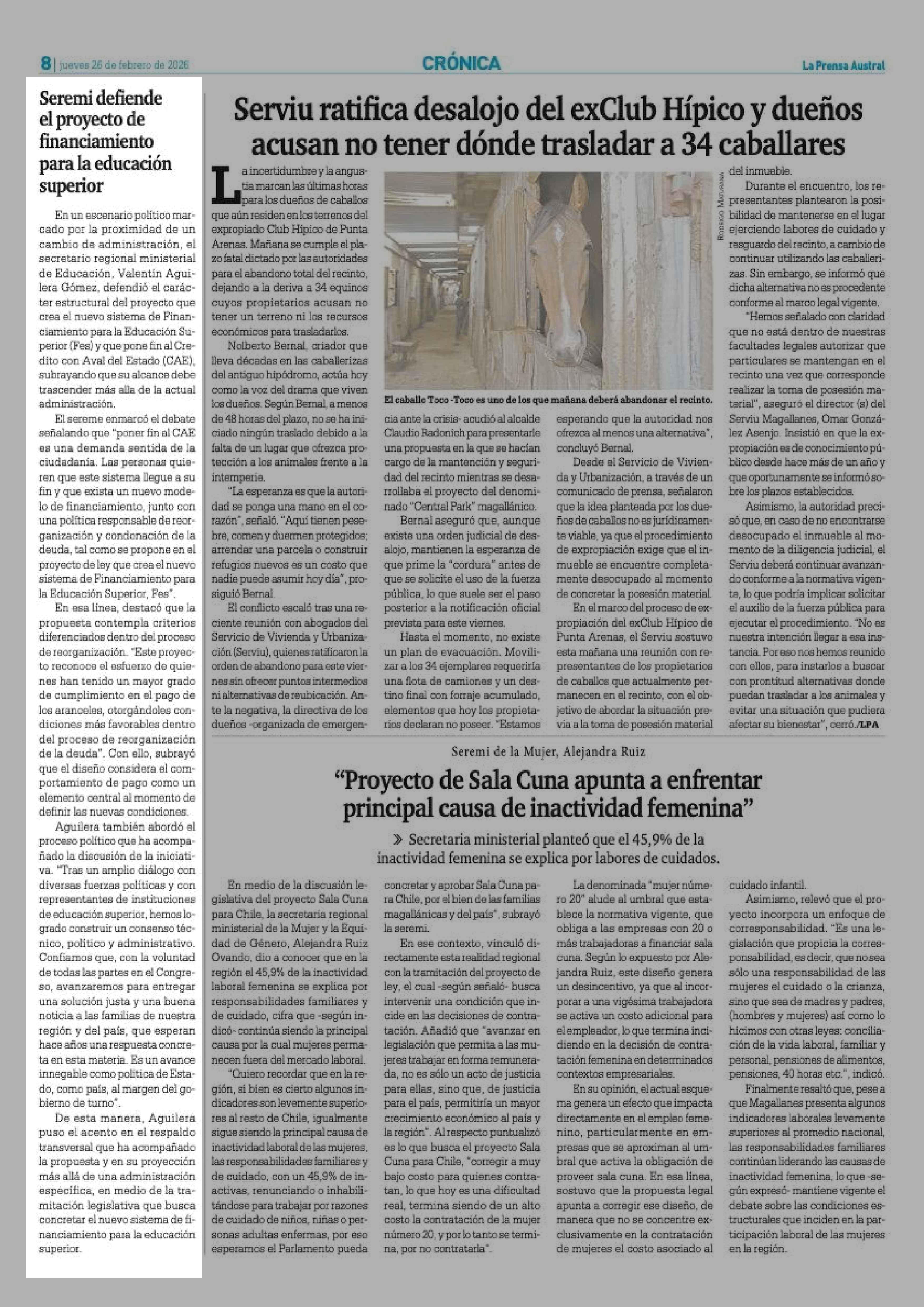 Seremi defiende el proyecto de financiamiento para la educación superior 26-02-2026 La Prensa Austral |