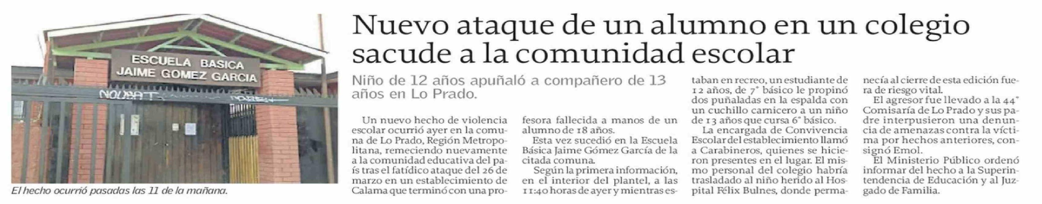 | Título: | Nuevo ataque de un alumno en un colegio sacude a la comunidad escolar |