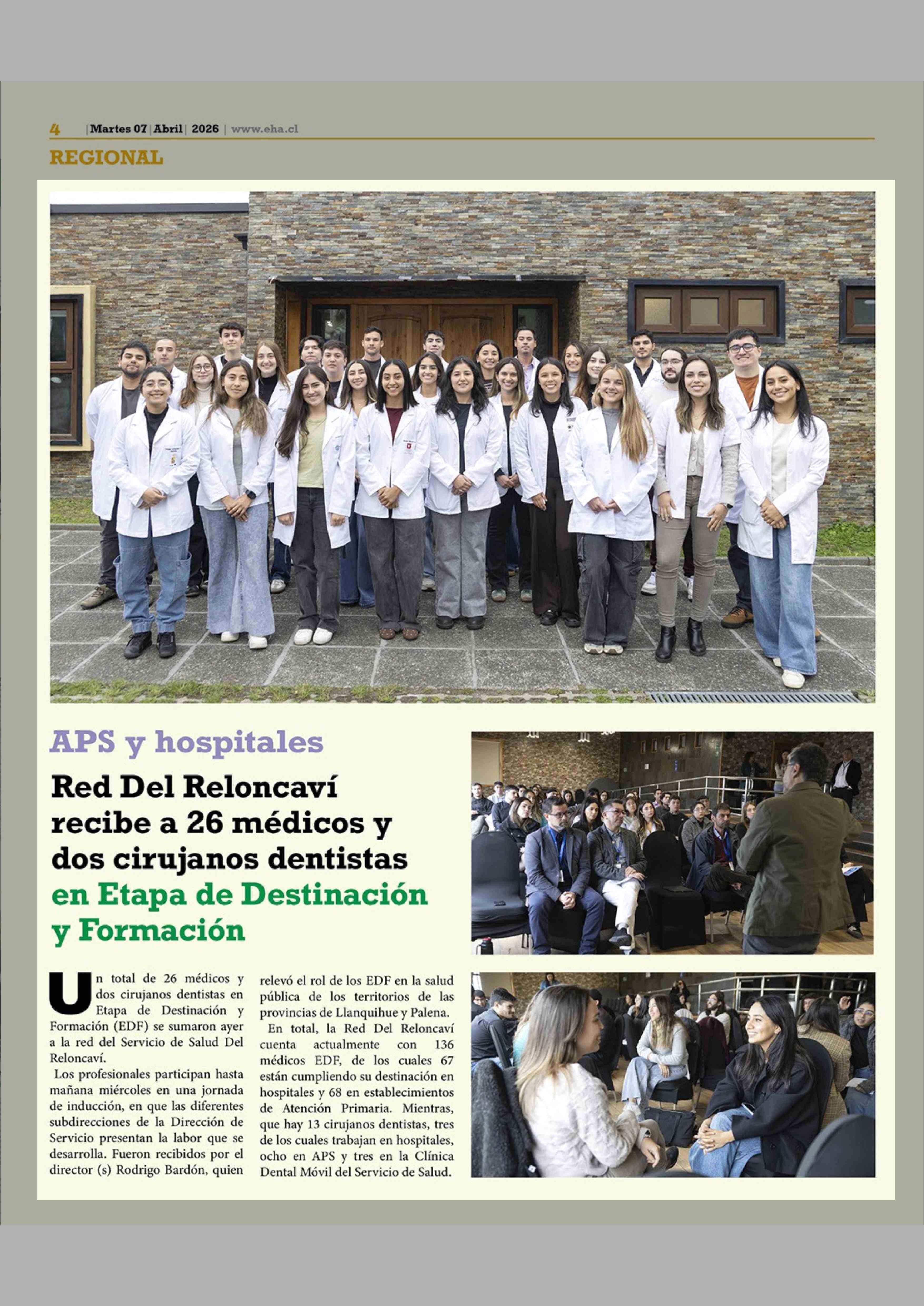 Red Del Reloncaví recibe a 26 médicos y dos cirujanos dentistas en Etapa de Destinación y Formación 07-04-2026 El Heraldo Austral |