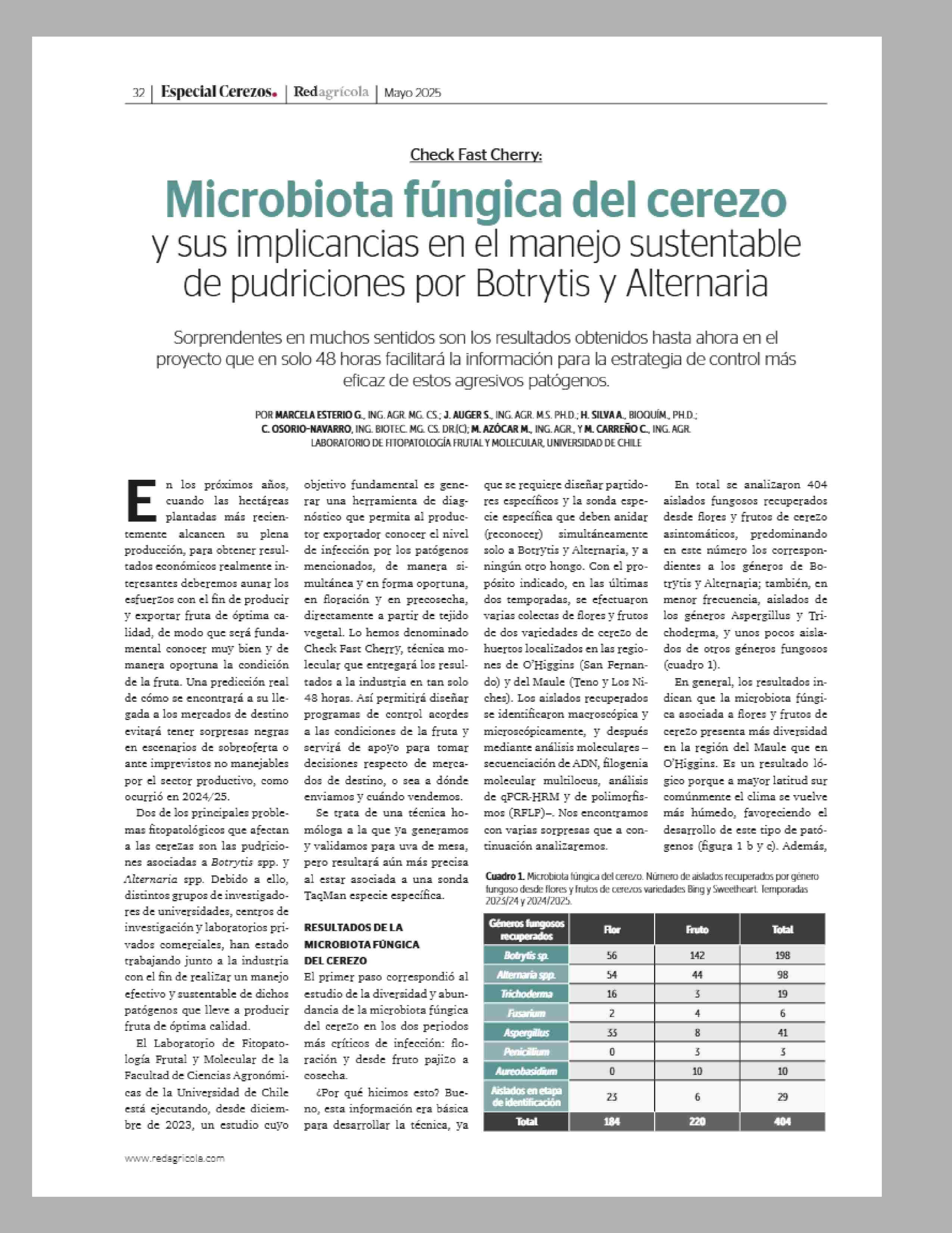 Microbiota fúngica del cerezo y sus implicancias en el manejo sustentable de pudriciones por Botrytis y Alternaria