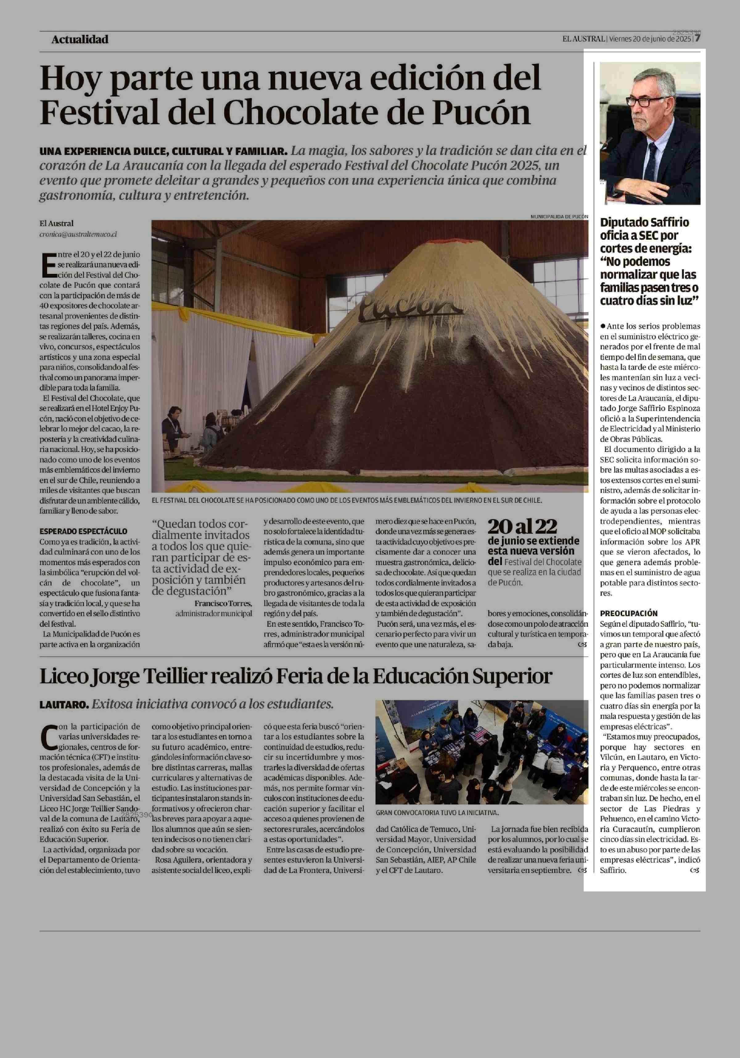 Diputado Saffirio cuatro dias sin luz" familias pasen tres o normalizar que las cortes de energía: "No podemos oficia a SEC por 20-06-2025 El Austral de la Araucanía |