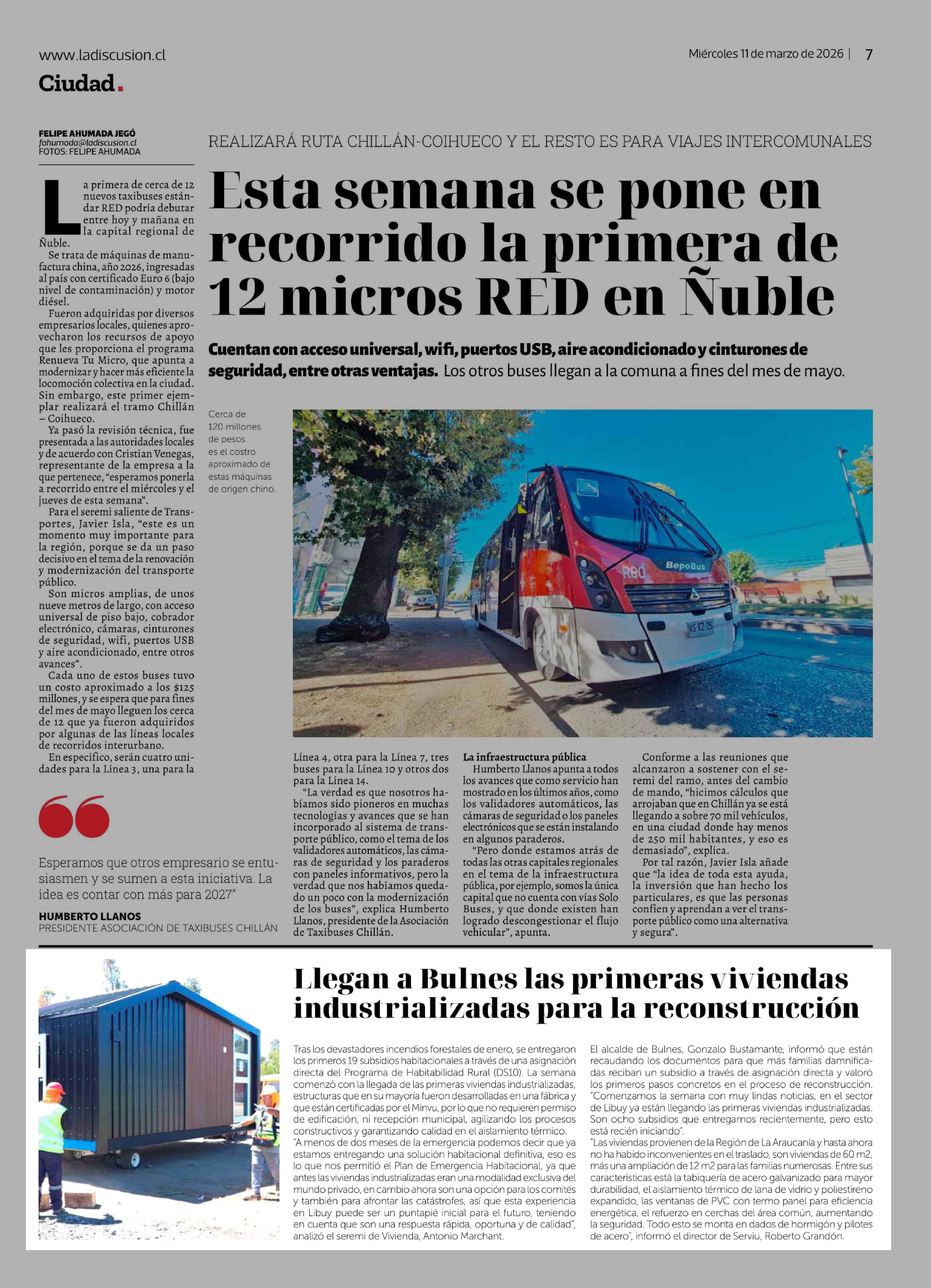 Llegan a Bulnes las primeras viviendas industrializadas para la reconstrucción 11-03-2026 La Discusión |