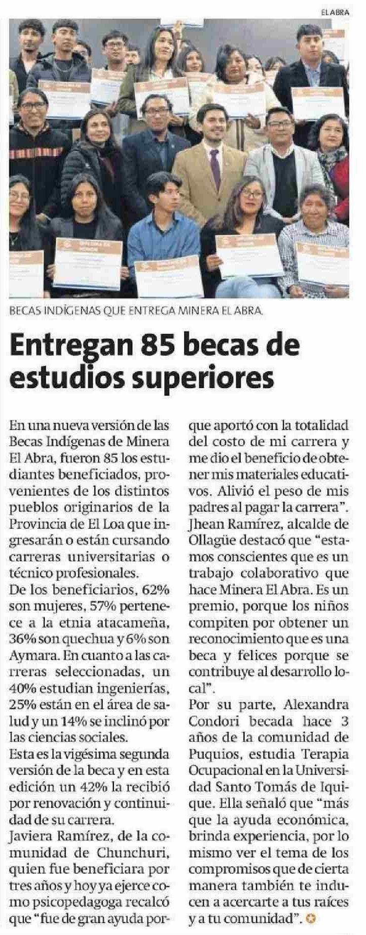 Entregan 85 becas de estudios superiores 10-06-2025 La Estrella de Antofagasta |