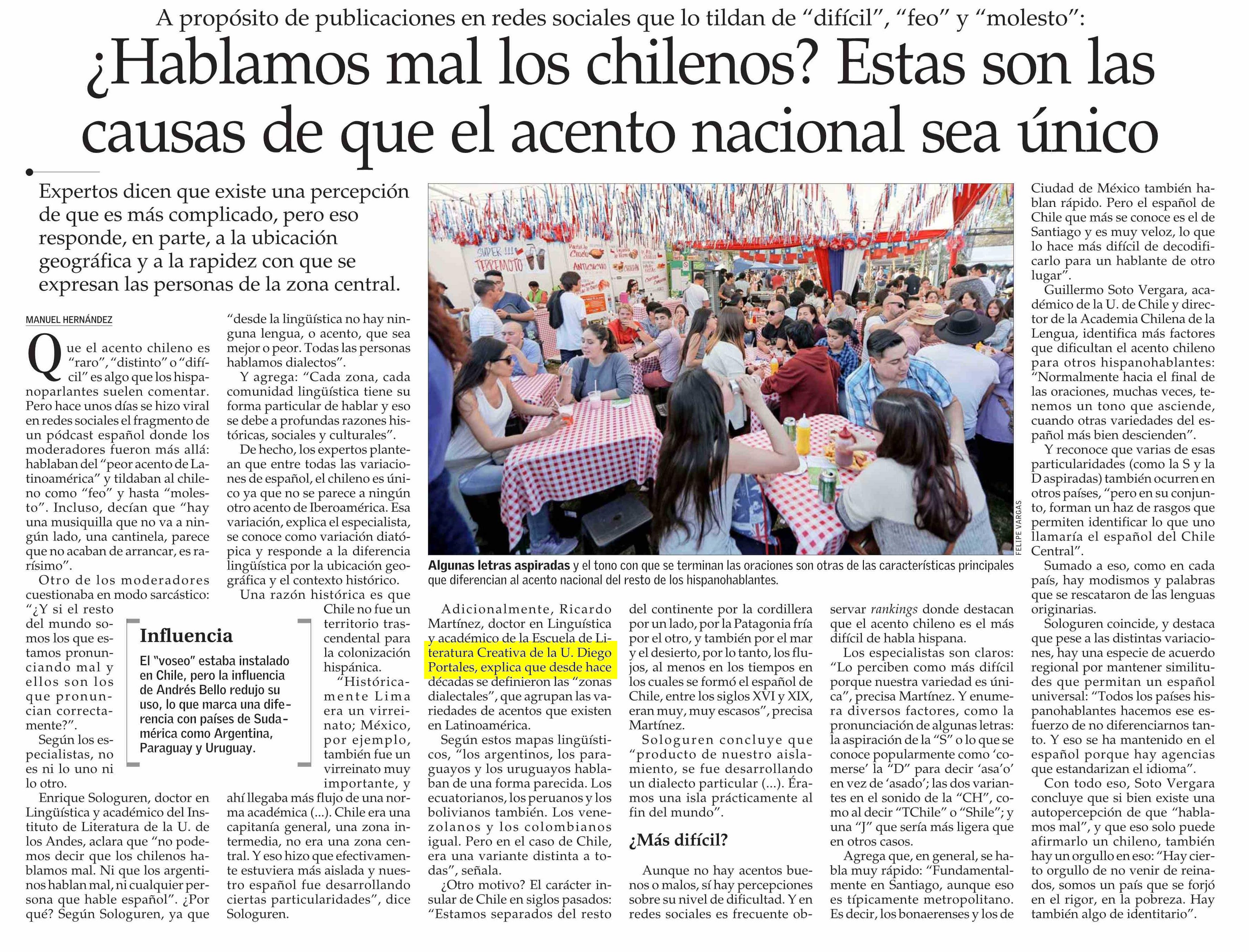 ¿Hablamos mal los chilenos? Estas son las causas de que el acento nacional sea único 18-07-2025 El Mercurio |