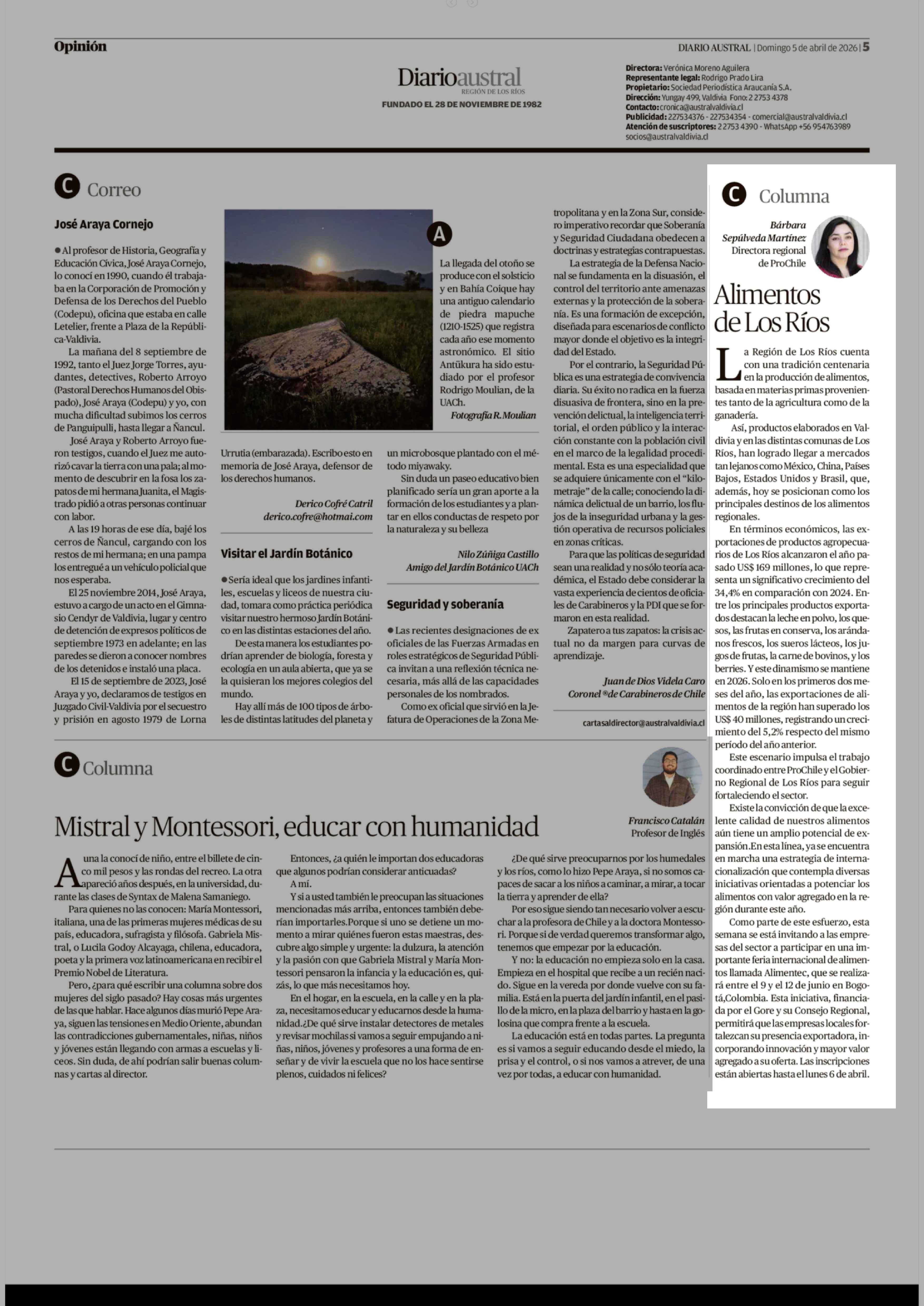 | Fecha: | 05-04-2026 | Sector: | Columnas de Opinión | Región: | Región de Los Ríos |