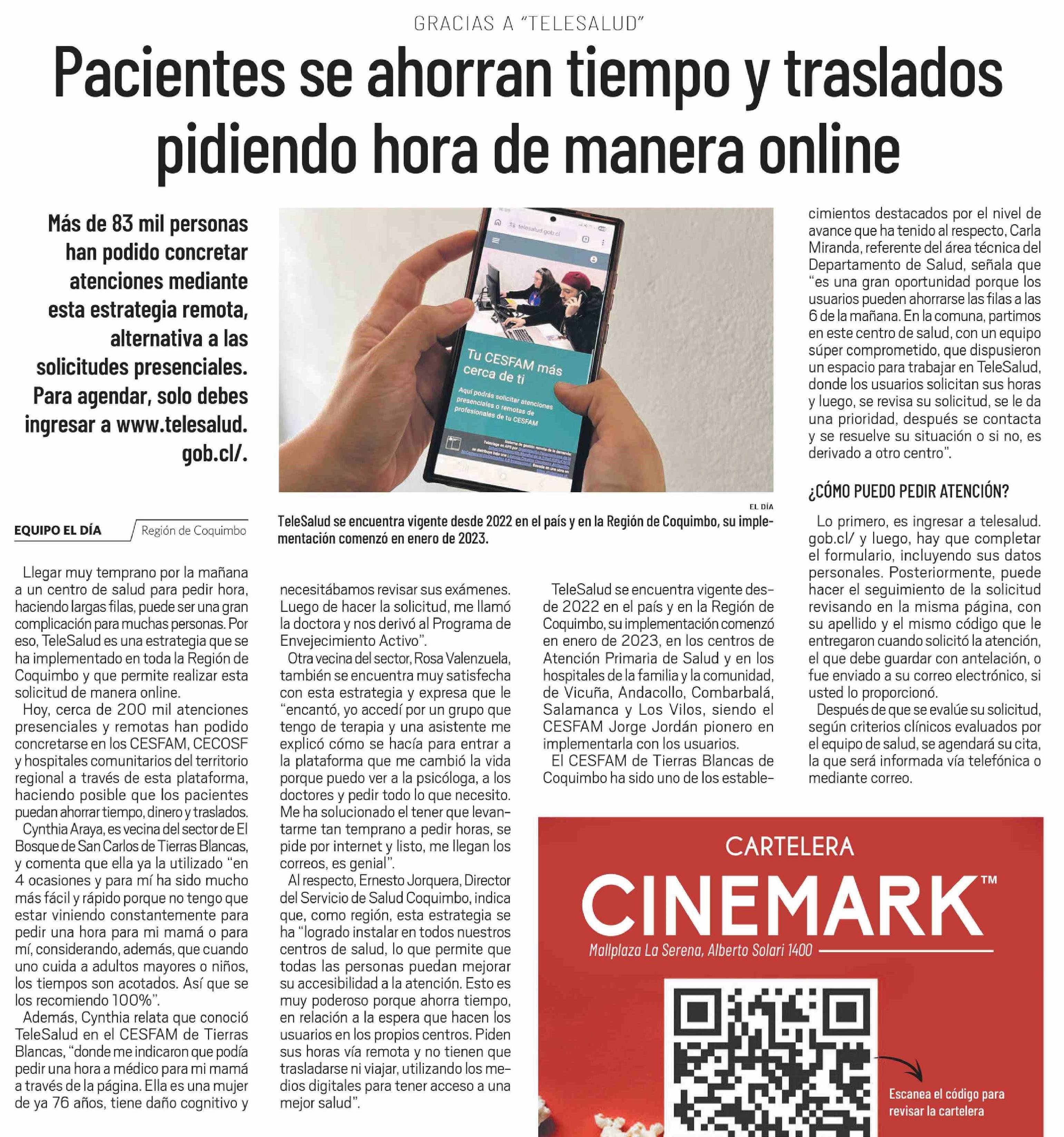 | Título: | Pacientes se ahorran tiempo y traslados pidiendo hora de manera online |